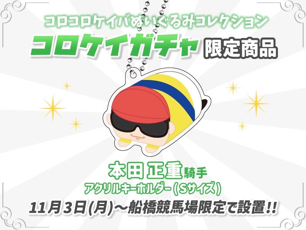 コロガチャの新しい仲間を紹介します🏇💨 🏇\\本田正重騎手//🏇 アクリルキーホルダーSサイズ 11/3(月)JBC DAYから、船橋競馬場でコロガチャに🆕アイテムが挿入になります。 maverick(ハートビートセンター)にて‼️ #コロコロケイバ #コロケイ #船橋ケイバ #本田正重 pic.x.com/MGnZcCCzqL