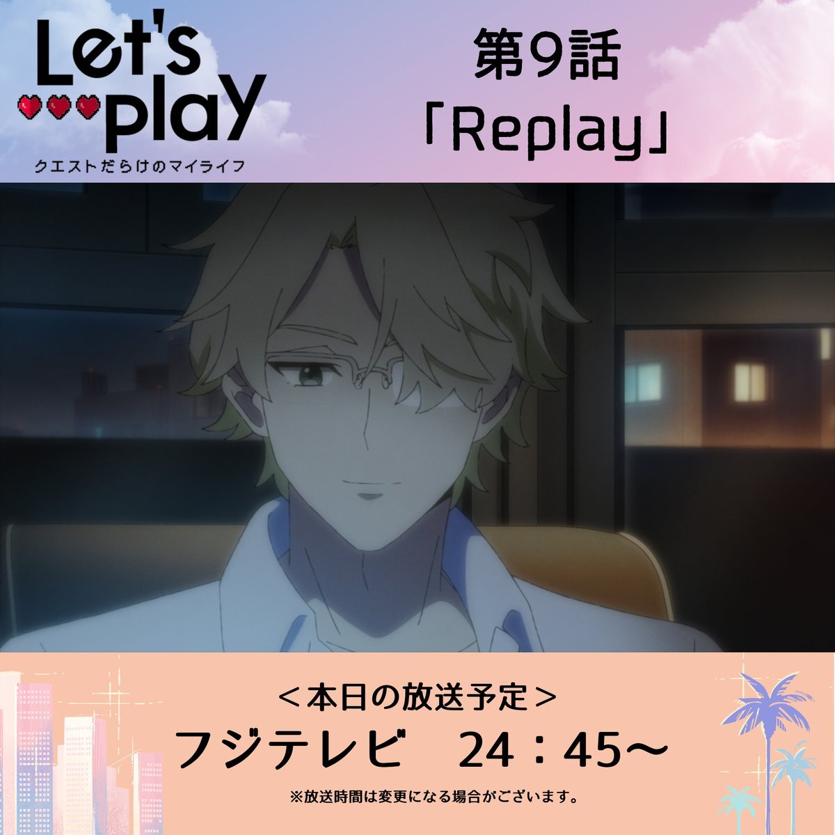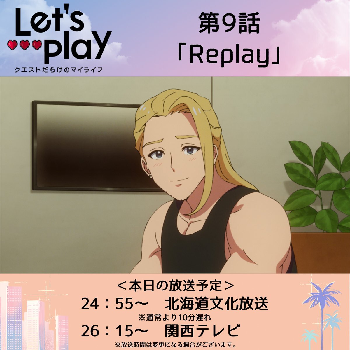 🎮... 本日の放送予定 ...❤ 🌴11/27(木)🌴 24:55~ 北海道文化放送(10分押し) 26:15~ 関西テレビ 第9話「Replay」 letsplay-anime.com/episode/?episo… 声の出演: #花澤香菜、#土屋神葉、#中村悠一、#杉田智和 ほか #lets_anime #レップレ pic.x.com/2CSBSKBrxB