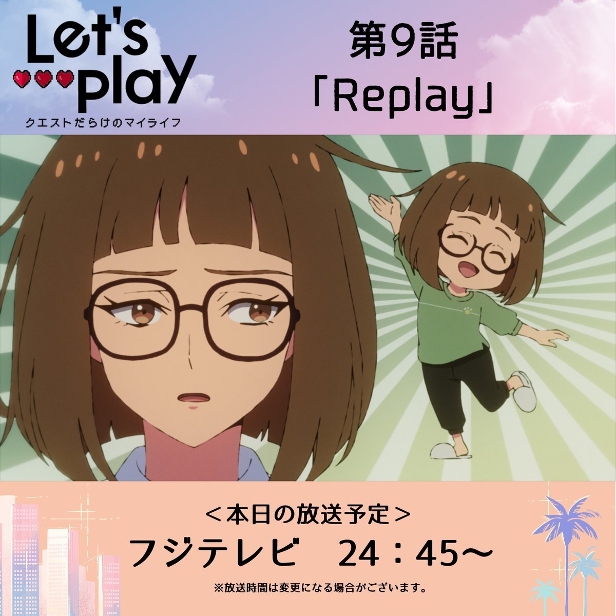 🎮... 本日24:45~第9話放送 ...❤ 第9話「Replay」 letsplay-anime.com/episode/?episo… 『Let's Play クエストだらけのマイライフ』 声の出演: #花澤香菜、#土屋神葉、#中村悠一、#杉田智和 ほか #lets_anime #レップレ pic.x.com/qNjYXwgpiY