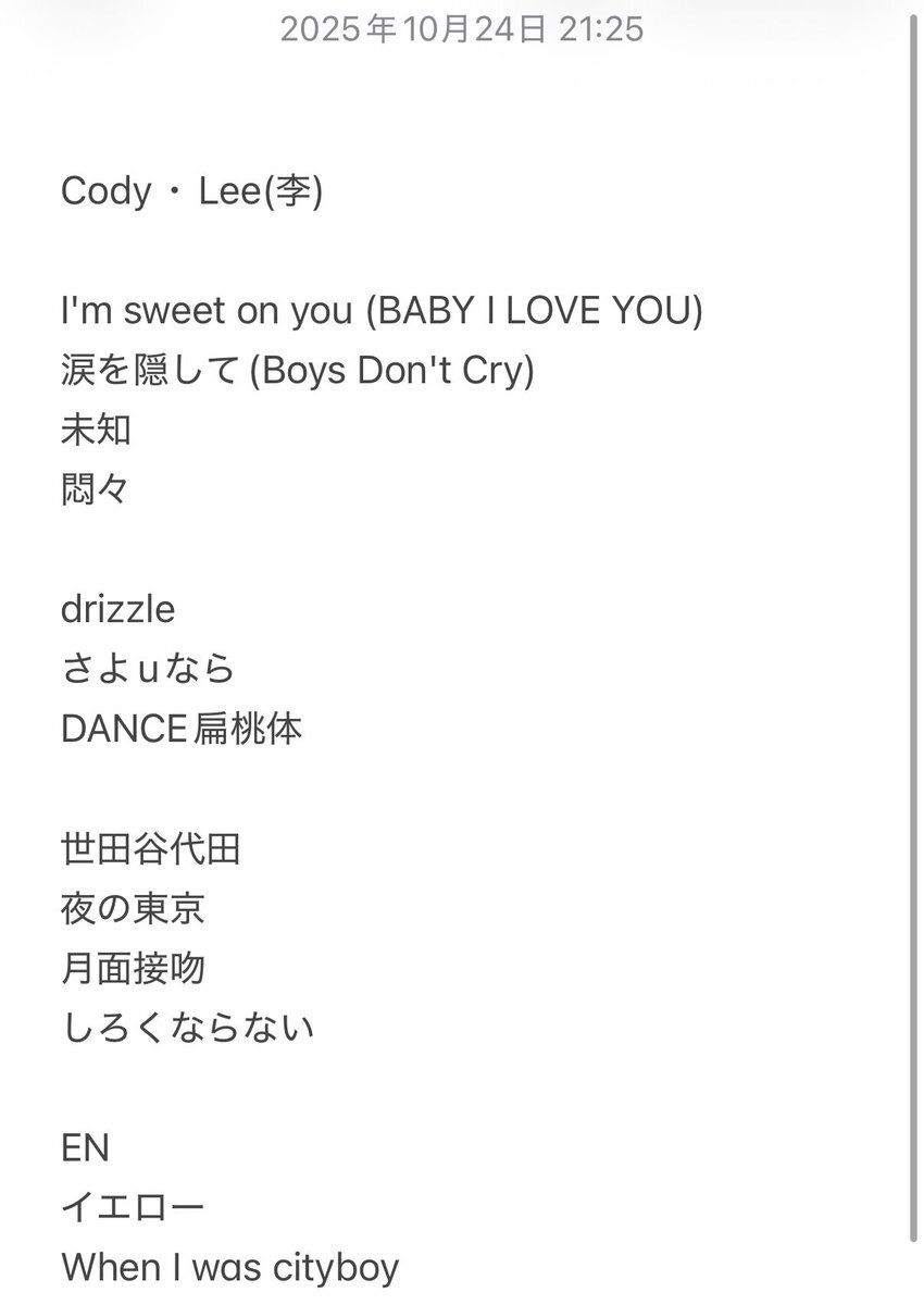 Cody・Lee(李) Kei Nishima 30th Birthday Live ニシマさんが考えたセットリスト #Codylee #李 #ニシマケイしか勝たん pic.x.com/gWLnxM1isE
