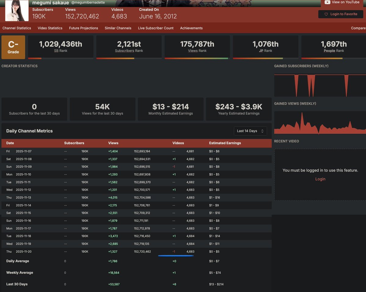 坂上恵 めぐみちゃんねる 直近動画 1本 非公開 チャンネル登録者突如400人程増加 YouTubeアルゴリズム何挙動を検知 190,999人に 動画非公開にしてチャンネル登録者増えるって 【やってる】と思われますよね #李下に冠を正さず 疑義多すぎ pic.x.com/4lTMShJQCP