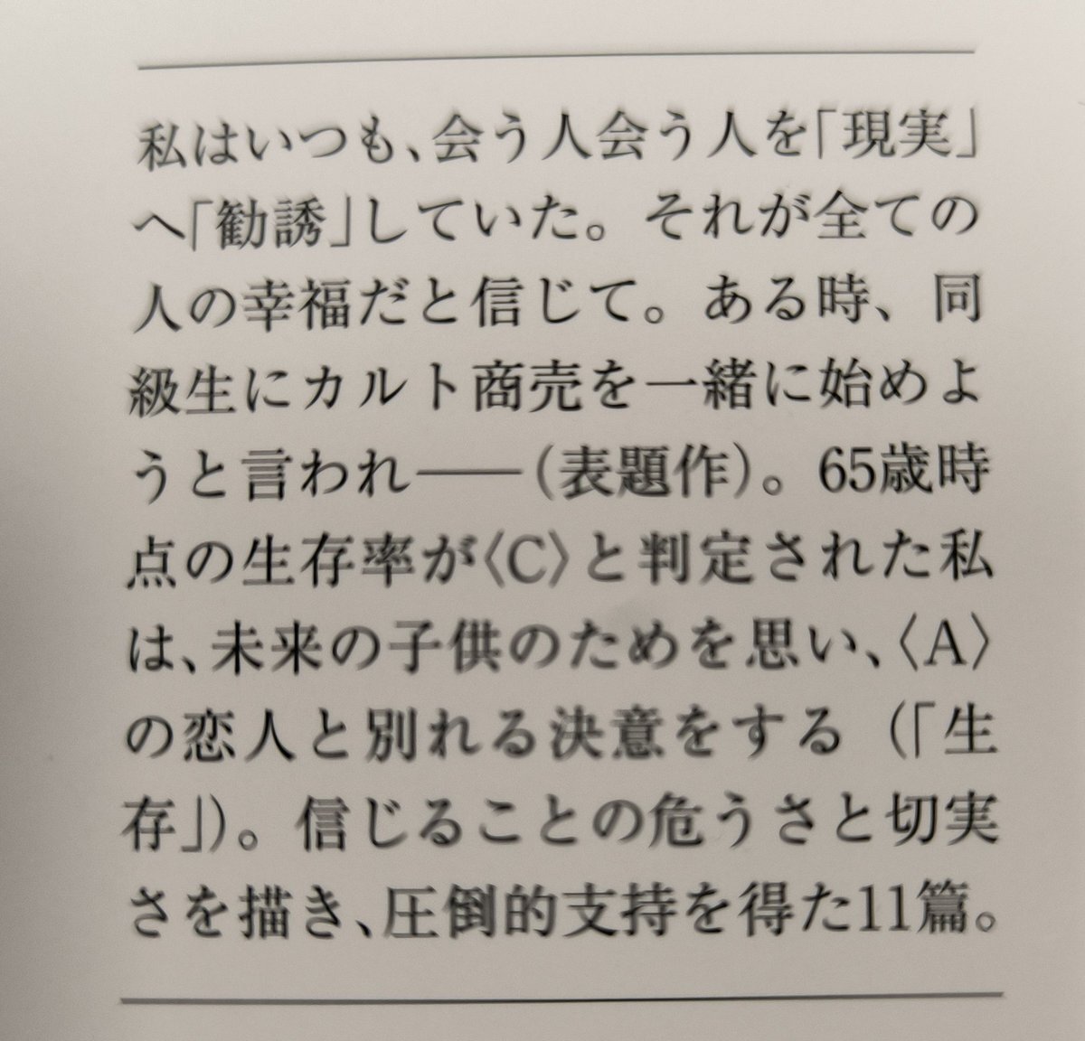 #信仰 #村田沙耶香 11篇の短編集。「生存」では【生存率アドバイザー】が出てくる近未来の設定でしたが、妙にリアリティがあって不気味(面白かった)です。著者独特の視点、世界観は他にはないと改めて感じました。#読了 pic.x.com/lxdgPFRxqO