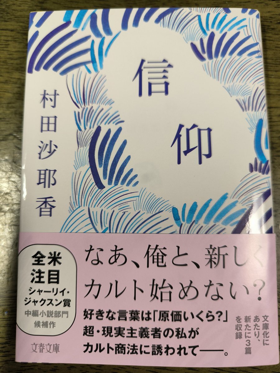 #信仰 #村田沙耶香 短編とエッセイ 宗教の勧誘と姉が野人になる話が印象的 22年初出コロナ前 ここから3年後に「世界99」 この本の出版時から世界観が徐々に作られているように思えた クレイジーと言うあだ名についても考えさせられる 心が重たくなるほど突き詰めている 文章を書く覚悟がすごい pic.x.com/Az997c2WuE