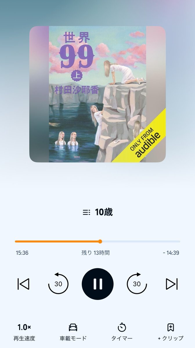 PR おお… なんとも読みにくい内容なのに、気づいたら続きが気になってる本。 村田沙耶香 『 世界99 』 第78回 野間文芸賞 受賞作🎖️ 👉amazon.co.jp/dp/B0FG23XZYG/… 大森ゆきさんのナレーションもいい👍 長編小説読むの大変だけど、耳で聴くと読みやすいよ🎧 #ad #村田沙耶香