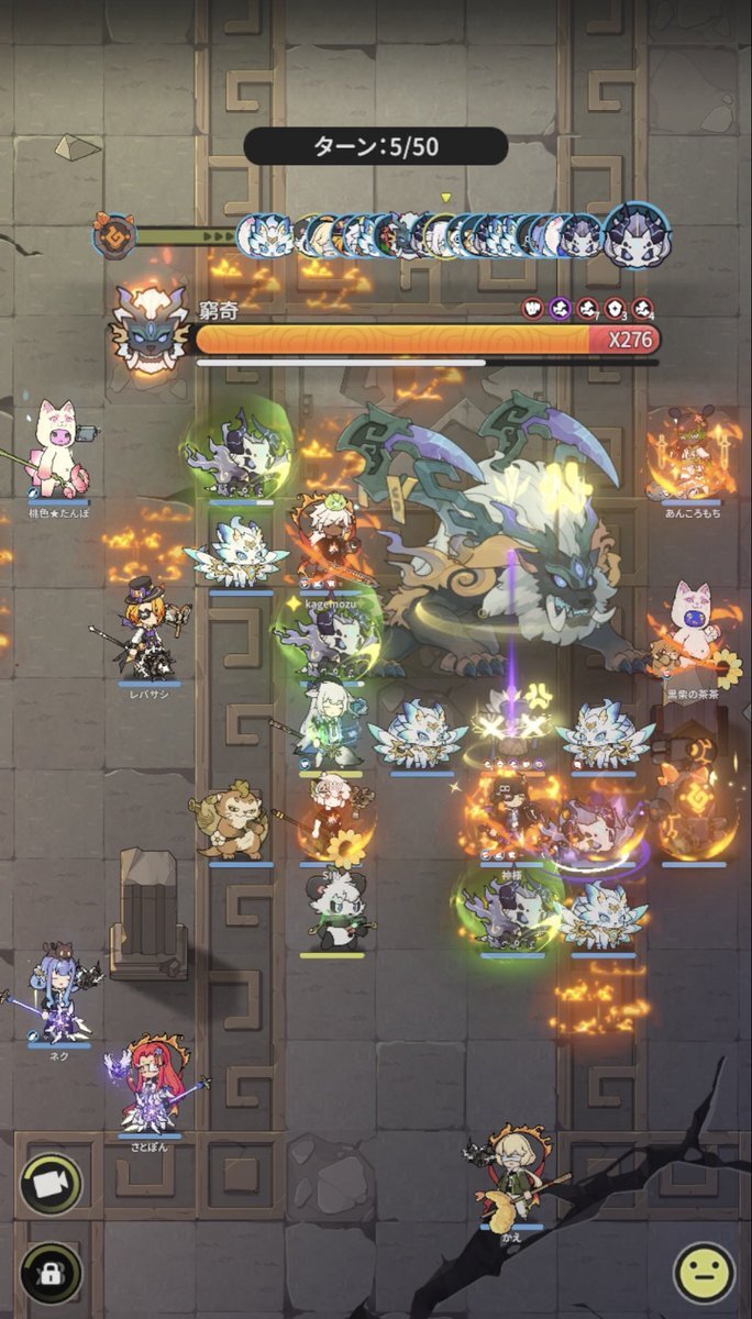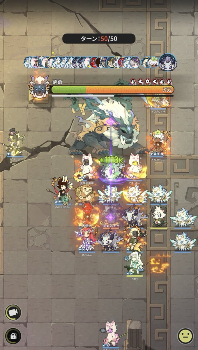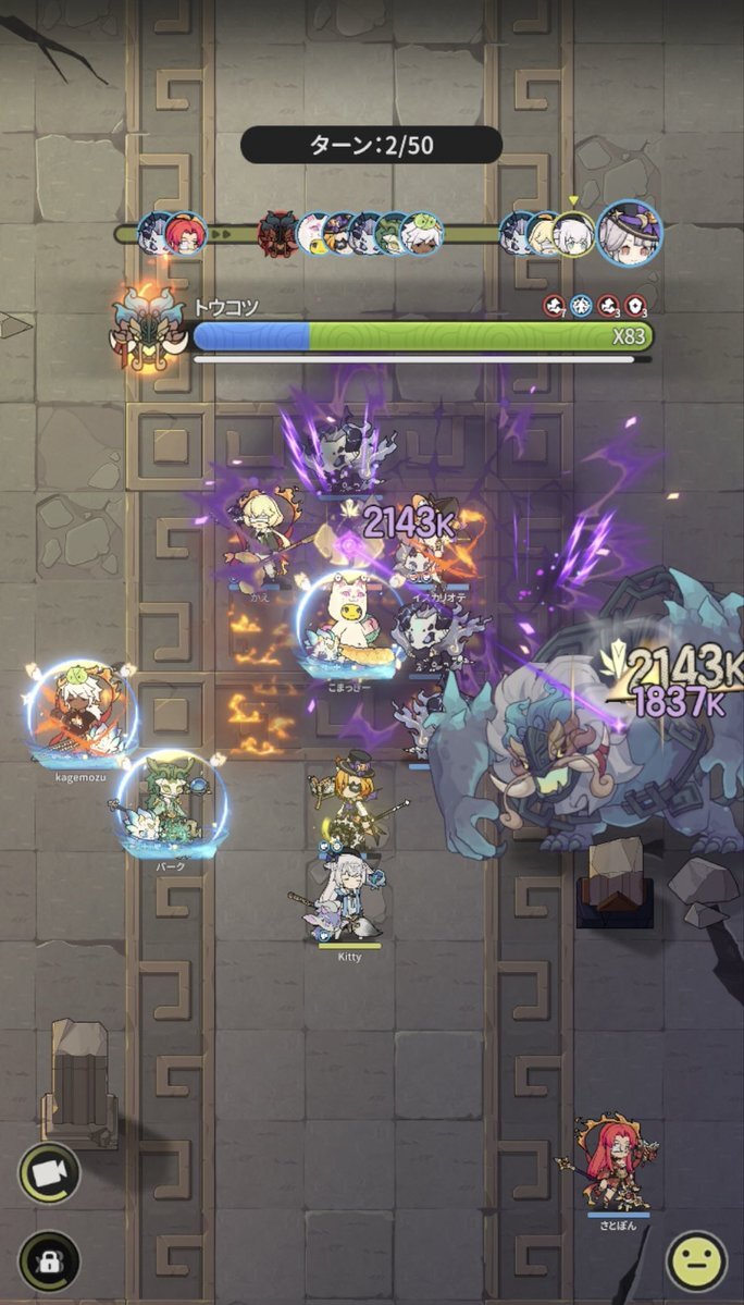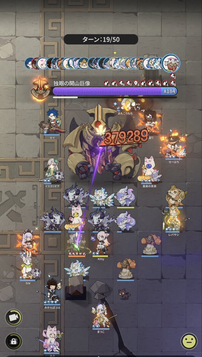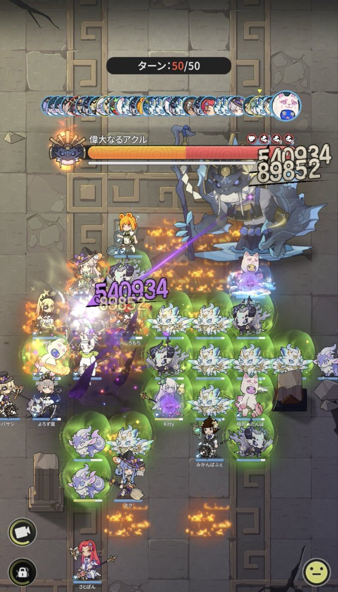 Server: 蒼風の烈域 Guild: マイペース トウコツさん、皆さん慣れているのか、殆どの方が、やられずに50ターン耐えられたようです╰(*´︶`*)╯♡ 皆様毎日ありがとうございます。 #杖剣マイペースギルド討伐 #杖と剣の伝説 #杖剣 #tsueken pic.x.com/zLRoCm2u3J