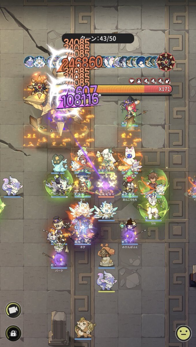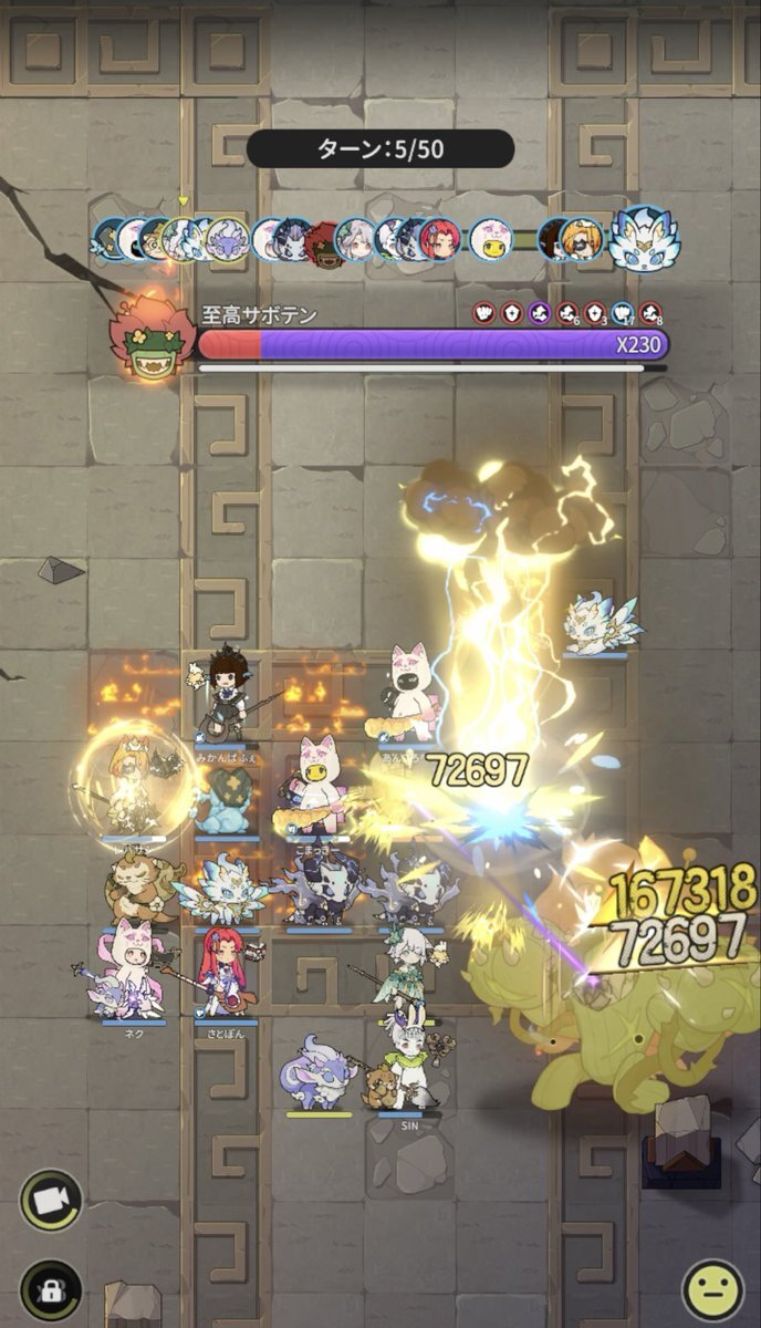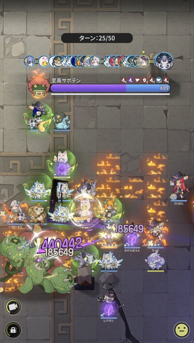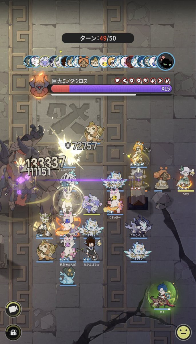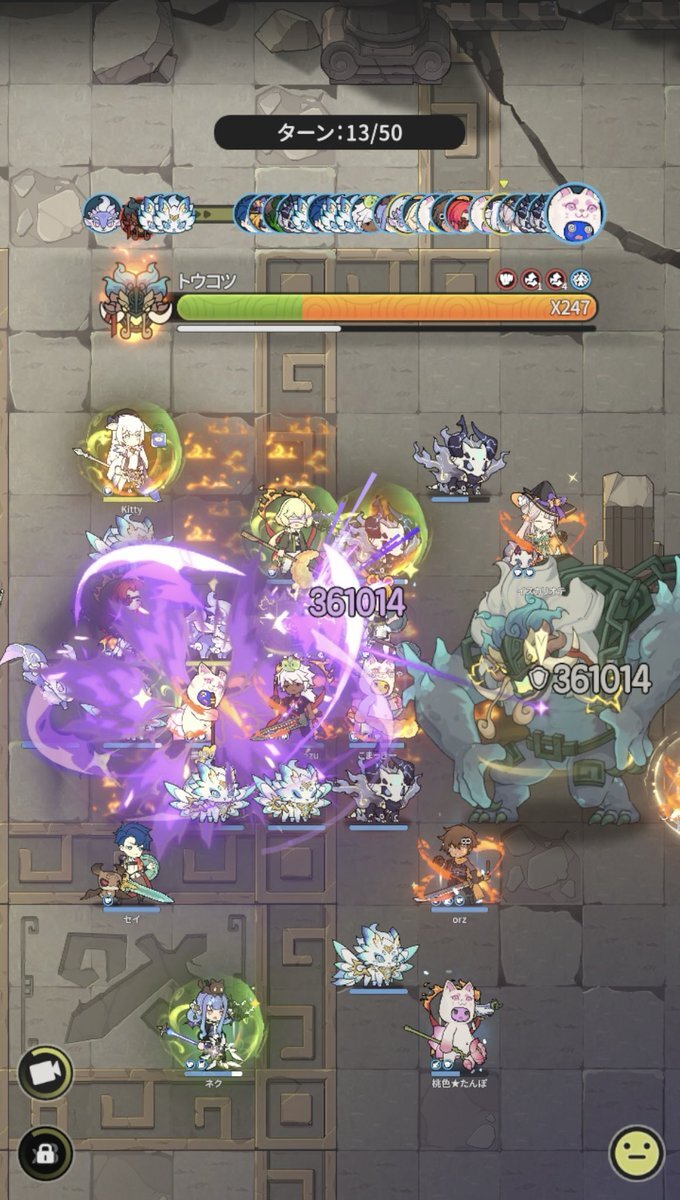 Server: 蒼風の烈域 Guild: マイペース トウコツさん、皆さん慣れているのか、殆どの方が、やられずに50ターン耐えられたようです╰(*´︶`*)╯♡ 皆様毎日ありがとうございます。 #杖剣マイペースギルド討伐 #杖と剣の伝説 #杖剣 #tsueken pic.x.com/zLRoCm2u3J