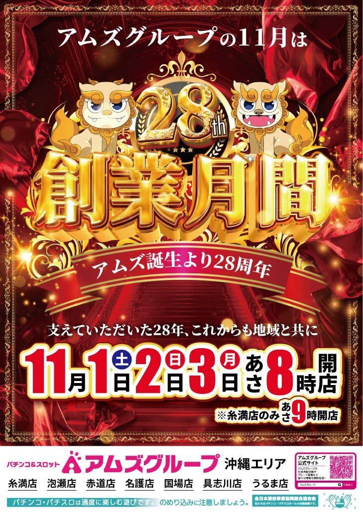 🌸わたなべちゃんに会えましたか?🌸 本日はグループ3店舗実践来店お疲れさまでした👏✨ そして‼️アムズはおかげさまで🎉【創業28年目】🎉 明日11/3(月)も気合い入れて盛り上げます🔥 ぜひアムズで楽しんでください‼️ #アムズ #28周年 #わたなべちゃん #来店実践 pic.x.com/B7LxDXUfL9