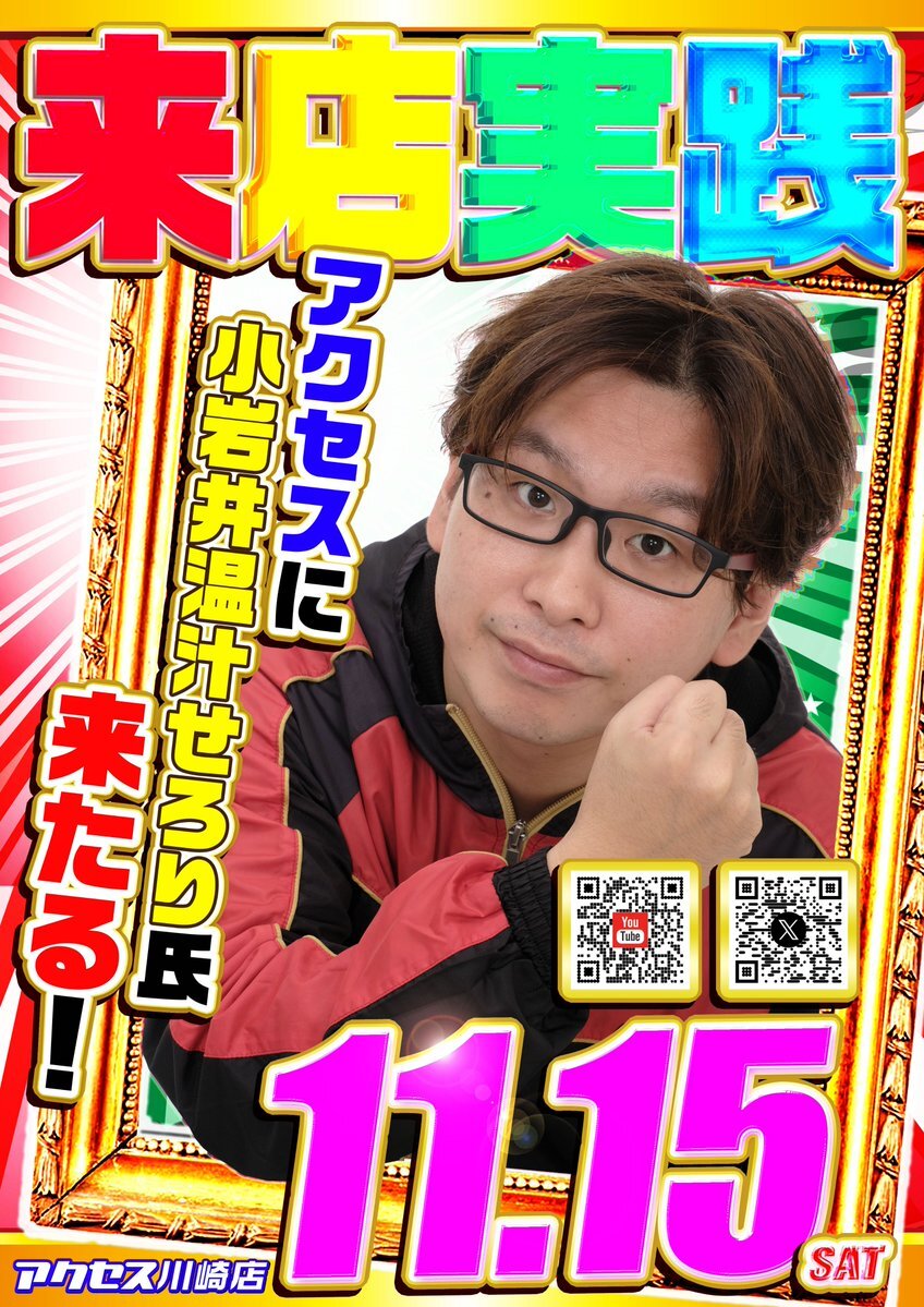 📍アクセス川崎店 初来店‼️ 🗓【11月15日(土)】 5のつく日=もちろんピエロ🎰行く予定よー! 👋 声かけはご気軽にどうぞ! 🎁 ステッカーもお配りしてますよ〜! ジャグラー打ちながら、まったり過ごす予定🐰 お近くの方、ぜひ遊びにきてね! 📸 #来店実践 #アクセス川崎店 🎰 #ジャグラー pic.x.com/jEVpLSKkNq