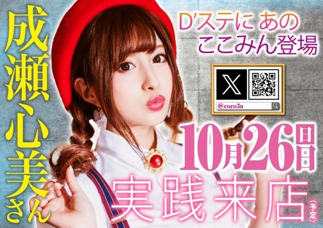 みんなー 生ここみんが上越にくるよー 10月26日 成瀬心美さん 会いにきてねー😆✌️ #Dステ #上越 #来店実践 #パチンコ #スロット pic.x.com/99trUe85DR