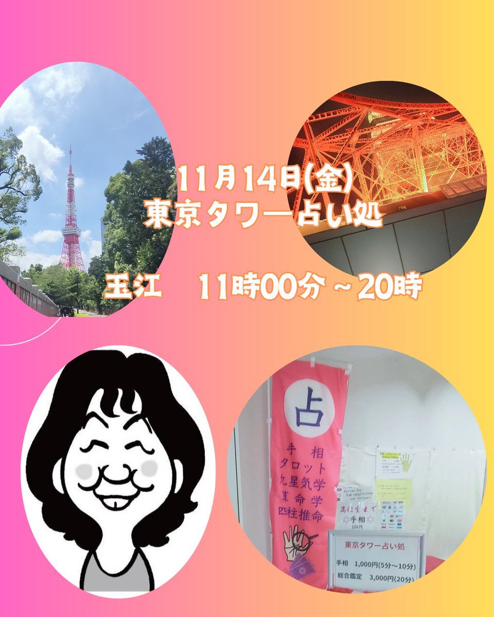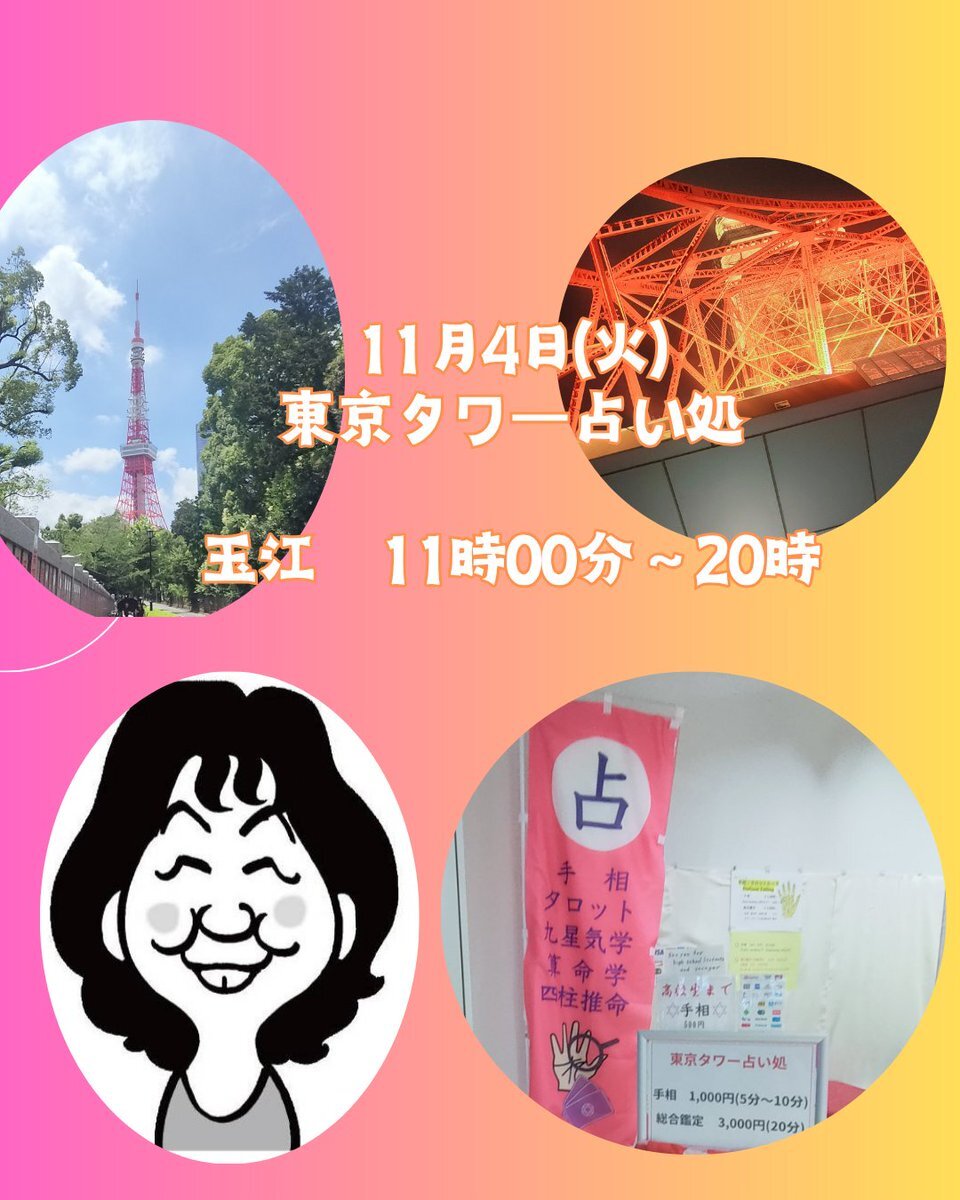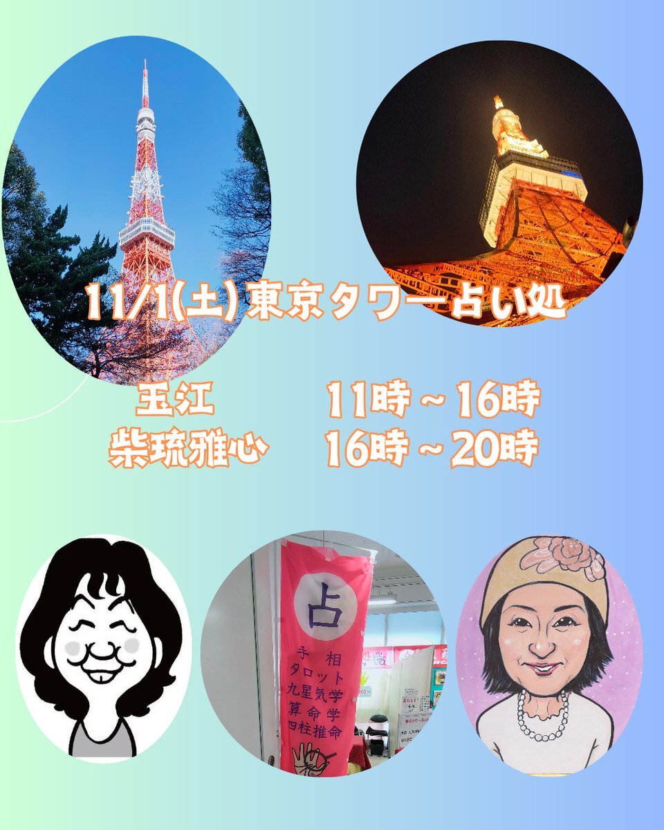 本日の東京タワー占い処担当 ⭐️玉江 @tamaemotooka 手相 人相 タロット 九星 気学 ⭐️柴琉雅心 @sairyumasane 手相 イーチンタロット 算命学 #東京タワー #東京タワー占い処 #東京プリント工房 #占い #手相 #イーチンタロット #算命学 #タロット #人相 #九星 #気学 pic.x.com/Gsa0j69WQO