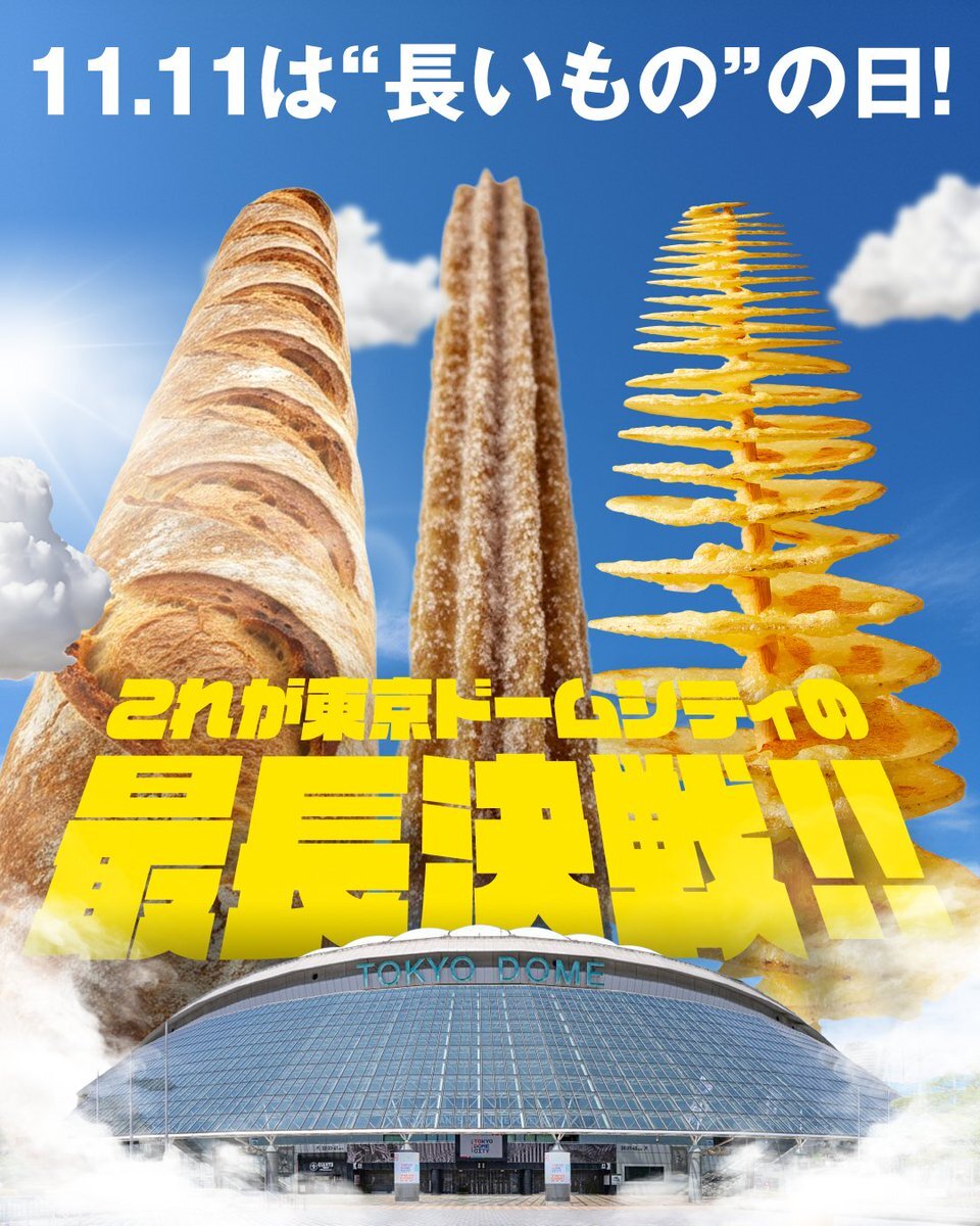 今日は11月11日なので、東京ドームシティで食べられる“長いもの”を探してみました💭 📍DANNY CHURROS TOKYO 📍ビゴの店 📍LONG! LONGER!! LONGEST!!! #東京ドームシティ #tokyodomecity #長いものの日 #1111の日 pic.x.com/H3eCi2Im1b