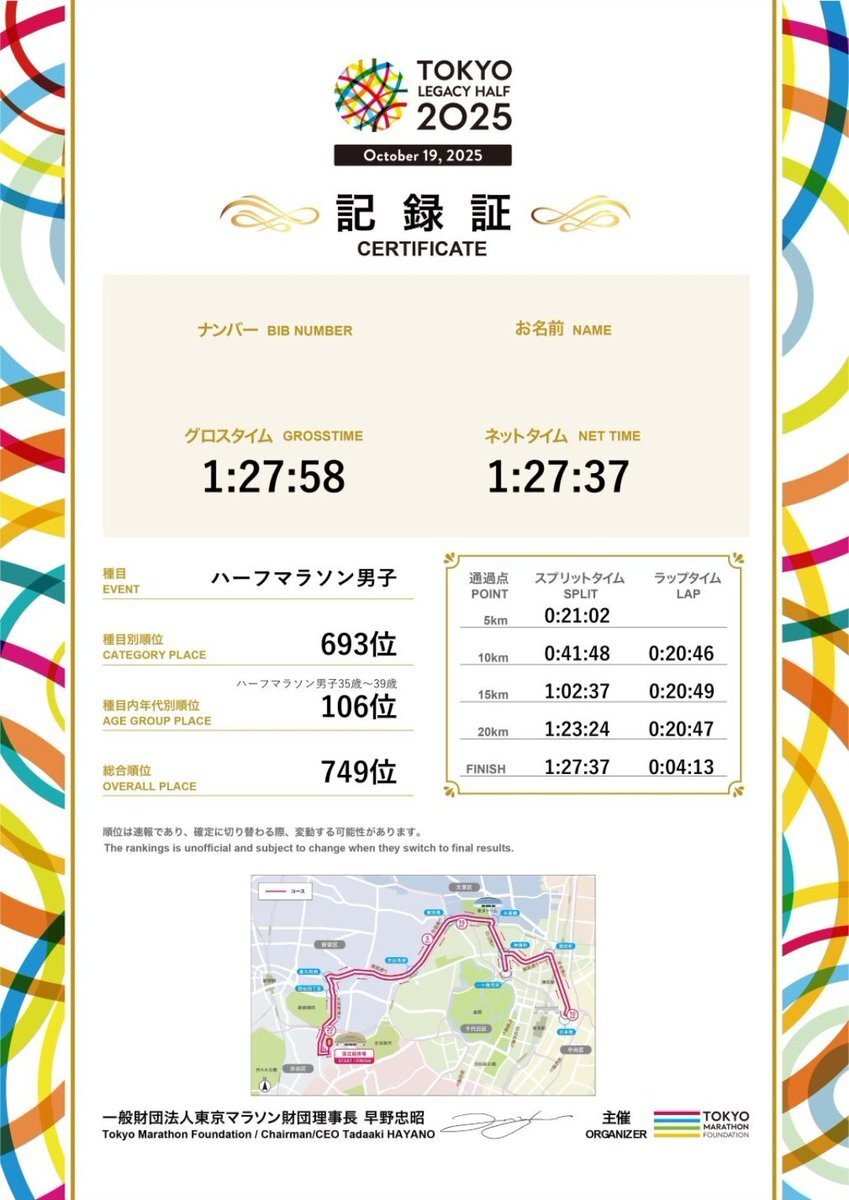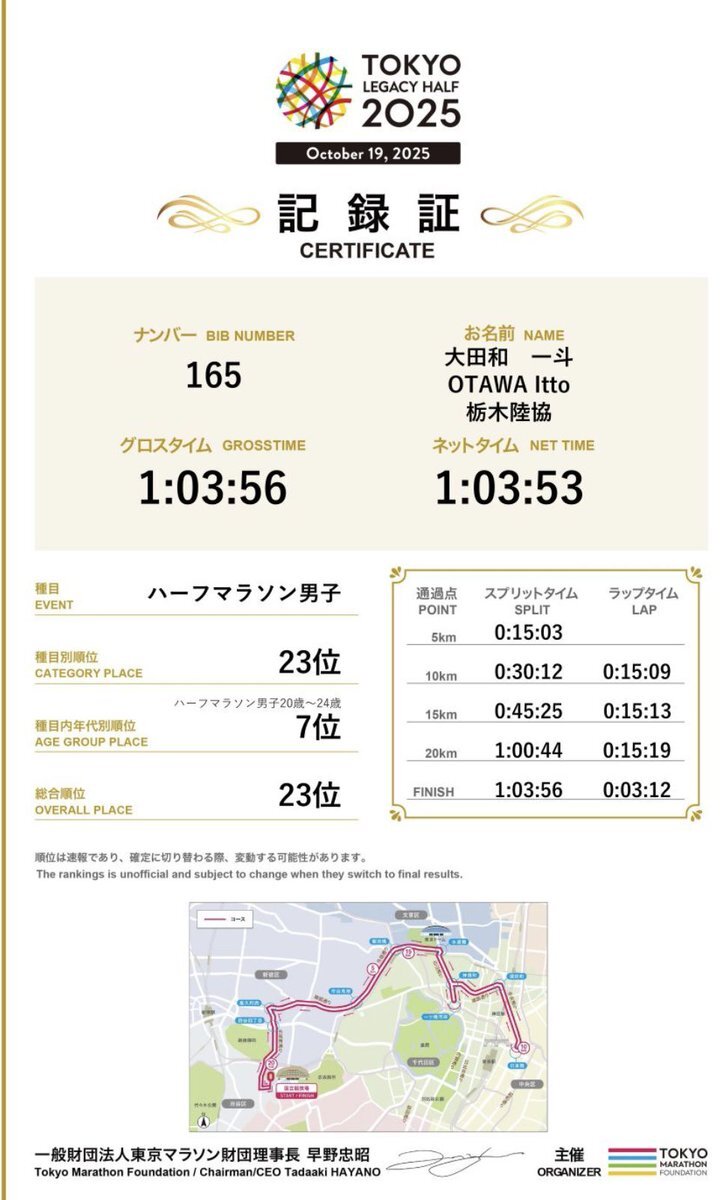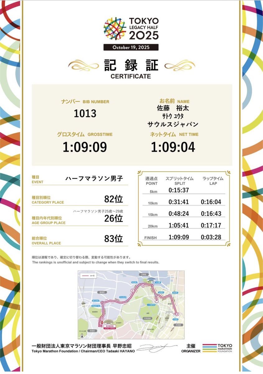 2025/10/19 東京レガシーハーフ 23位 63’56 大都会の道路のど真ん中を走れて、ワクワクしながら楽しめました🏃♂️➡️ タイムもセカンドベスト👍 ハーフの自己ベストもいずれ目指したいと思います💪 #東京レガシーハーフ pic.x.com/3qj25cKpdk