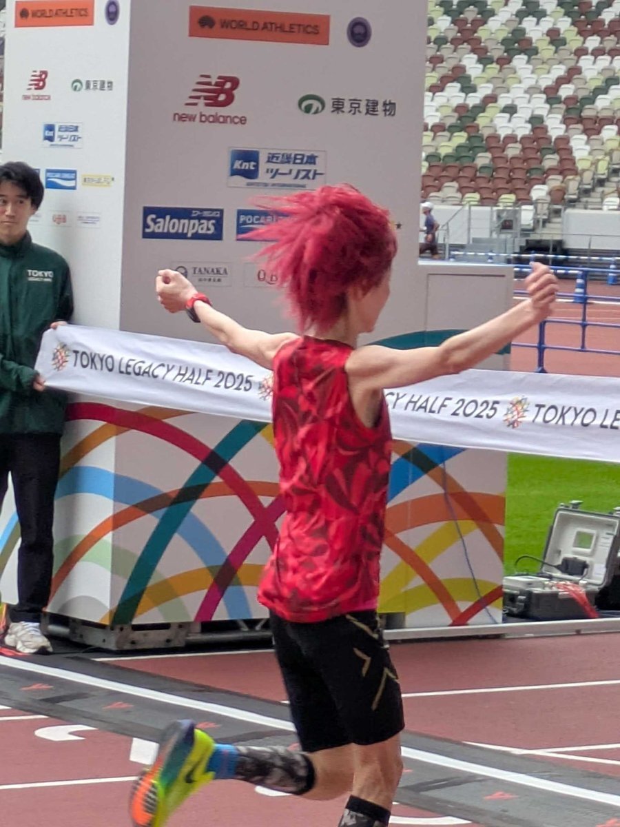 #東京レガシーハーフ 去年より2分遅いけど ラスト5kmの登り坂で、上げれたのは収穫👏 最近、満足なjogが出来てなかったから安堵😊 たまたま、上司が撮ってくれてた 📸 1位でゴールテープ切るみたいな🤣 来月は、7年ぶりの #神戸マラソン ☆ 原点回帰! pic.x.com/zYGv50vHkJ