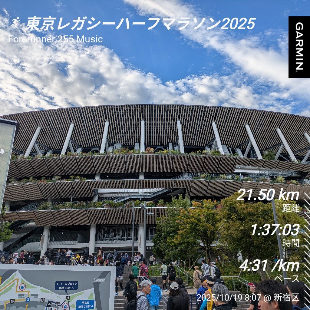 東京レガシーハーフ2025の回顧。鶴マラでサブ90をできなかったので確実にサブ90することが目標。毎度のことながらスタートは激混み。参加した人の中で思った人は多くいたと思うがペーサーが結構速い。12キロで追い付いて、余裕が合ってたので残り3キロでスパートで目標達成。 #東京レガシーハーフ pic.x.com/OkfaIXvOZn