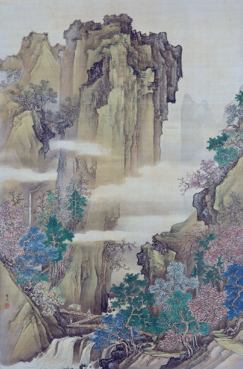 昨日ご紹介した、画家 #谷文晁。さまざまな絵画の流派を学んだ文晁独自の画風は「八宗兼学」と呼ばれました。こちらは深山幽谷の蜀の桟道を描いた『青緑山水図』(#東京富士美術館 @tokyofujibi)。岩山の描線には文晁が取り入れた北宋画の特徴が表れています。#ジャパンサーチ jpsearch.go.jp/item/tfam_art_… pic.x.com/3UD5yEZmr1