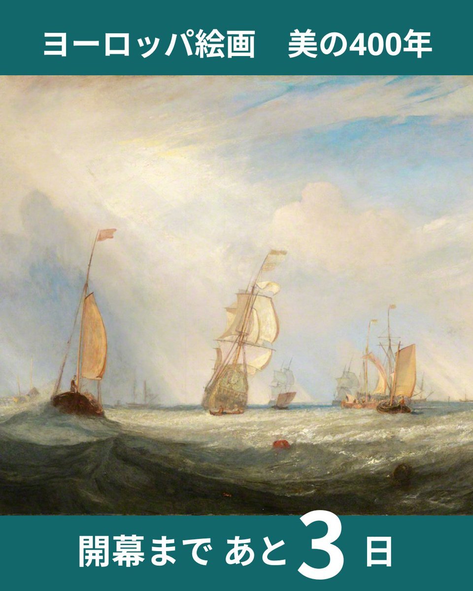開幕まで、あと3日! ヨーロッパ絵画 #美の400年 本日は展覧会のハイライトのひとつ、ターナー《ヘレヴーツリュイスから出航するユトレヒトシティ64号》を展示しました! 少しずつ会場も整い、展示空間が完成に近づいています 10/4(土)の開幕をどうぞお楽しみに! #コレ活 #八王子で逢いましょう