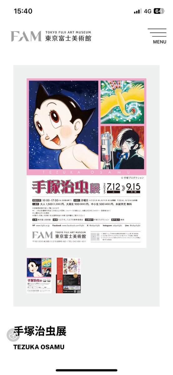 #手塚治虫展 #東京富士美術館 こないだの松本零士展もそうだったが、結構同じ場所に行ってる様子。大幅に描き直してる原稿が裏から見える展示とか良かったなぁ。9/15まで。 x.com/morimotoshoji/…