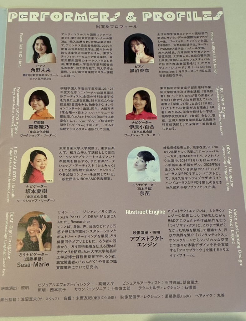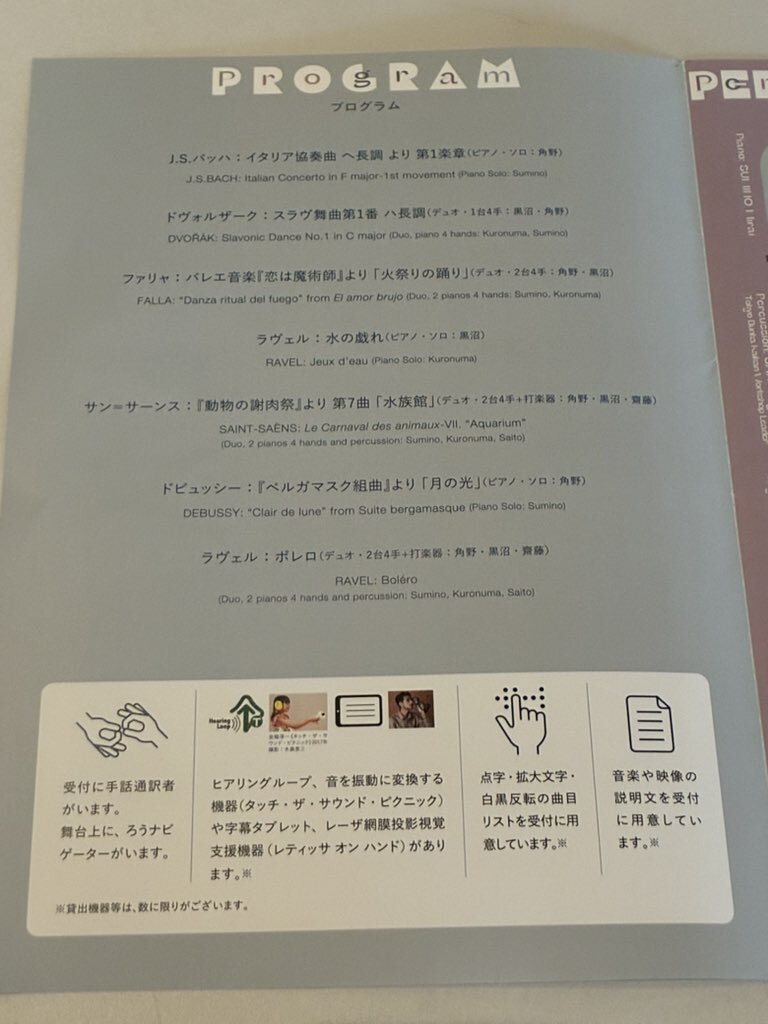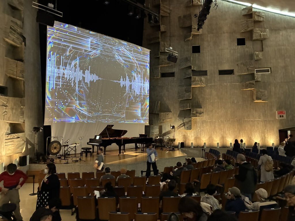 本日続いてこちら(既に終演) ピアニストの #角野未来 さん、 #黒沼香恋 さん #東京文化会館 プログラムは、奏でられた音を大スクリーンに映像で表現することで、耳が不自由な方を含む全ての人が音楽を楽しめる芸術体験 奏でられた音から空想を膨らませる普段の演奏会とは違い直感的なのが新鮮だった pic.x.com/OVJT2slZ1g