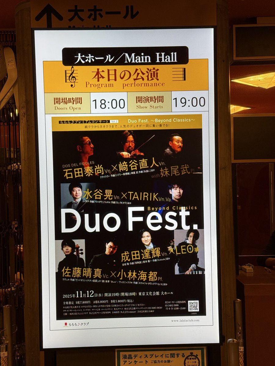 今日は、東京文化会館で、ららら♪プレミアムコンサート。 DOS DEL FIDDLES、観たかったのです。 楽しみだわ😊 と思ったら、TAIRIKくんも出演だなんて、うれしい。期待しちゃう。 #らららプレミアムコンサート #東京文化会館 pic.x.com/SauGILXiUB