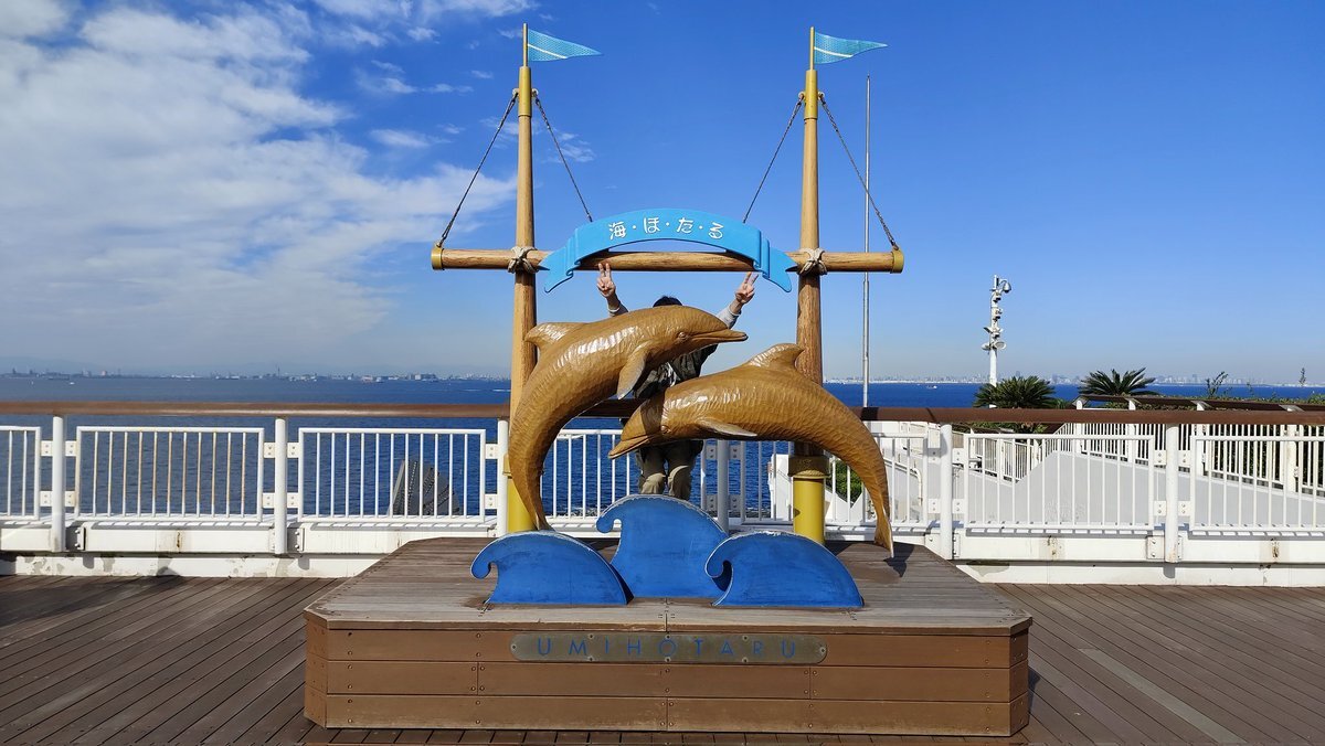 #終末ツーリング 06海ほたるモデル地探し答え合わせ♪ お姉ちゃんと同じボーズ♪ さかなのオブジェは、老朽化で撤去されちゃってます〜 設置跡だけ!見られます😆 #東京湾アクアライン #海ほたる pic.x.com/y6M7nHv7T2