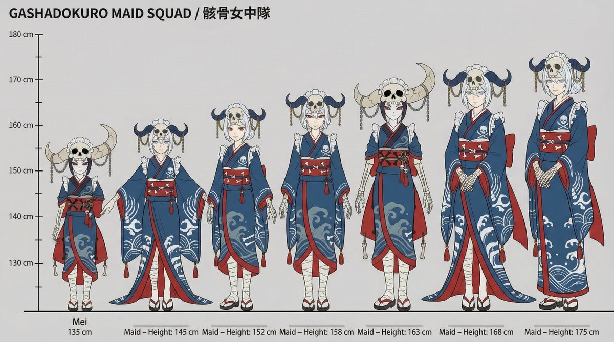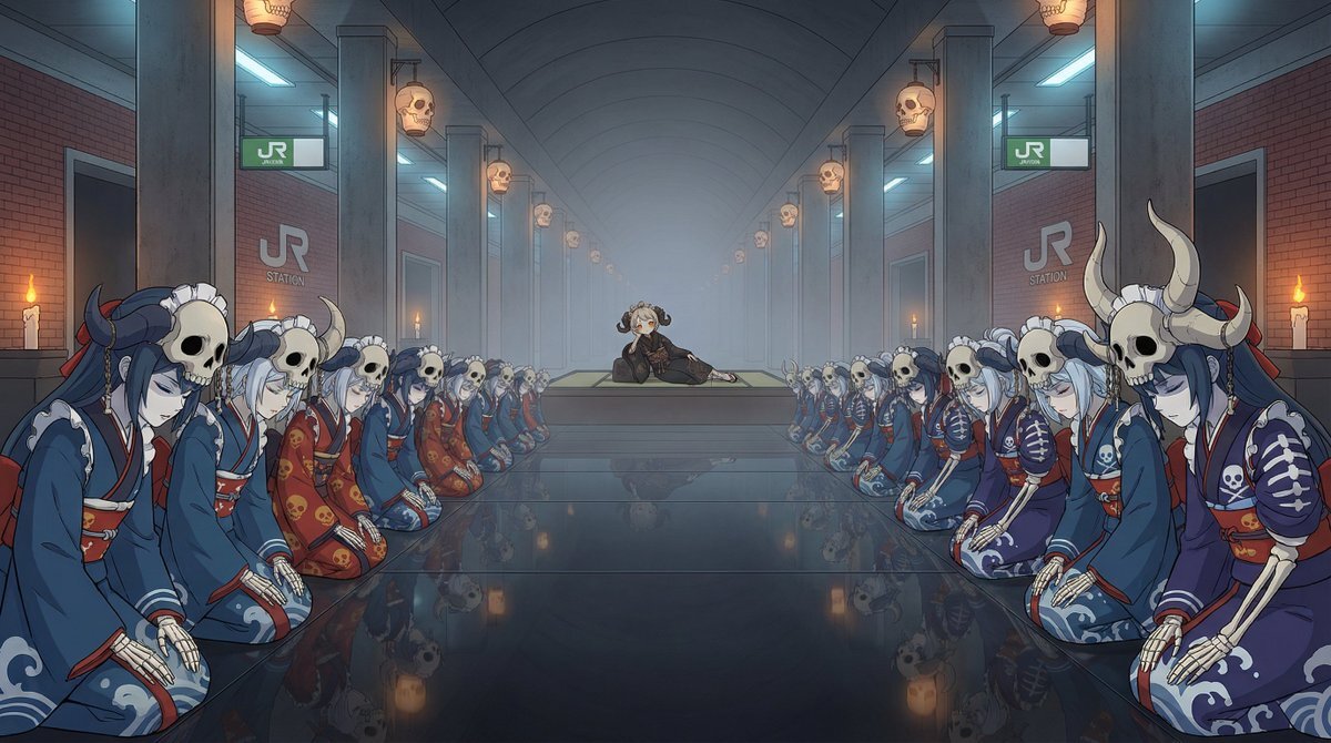 ガシャドクロのメイとそれに仕える骸骨女中隊を並べると悪の華感が増してとても満足、いいぞ。 #nanobananapro #東京百鬼パレード pic.x.com/Fqrioplbvy