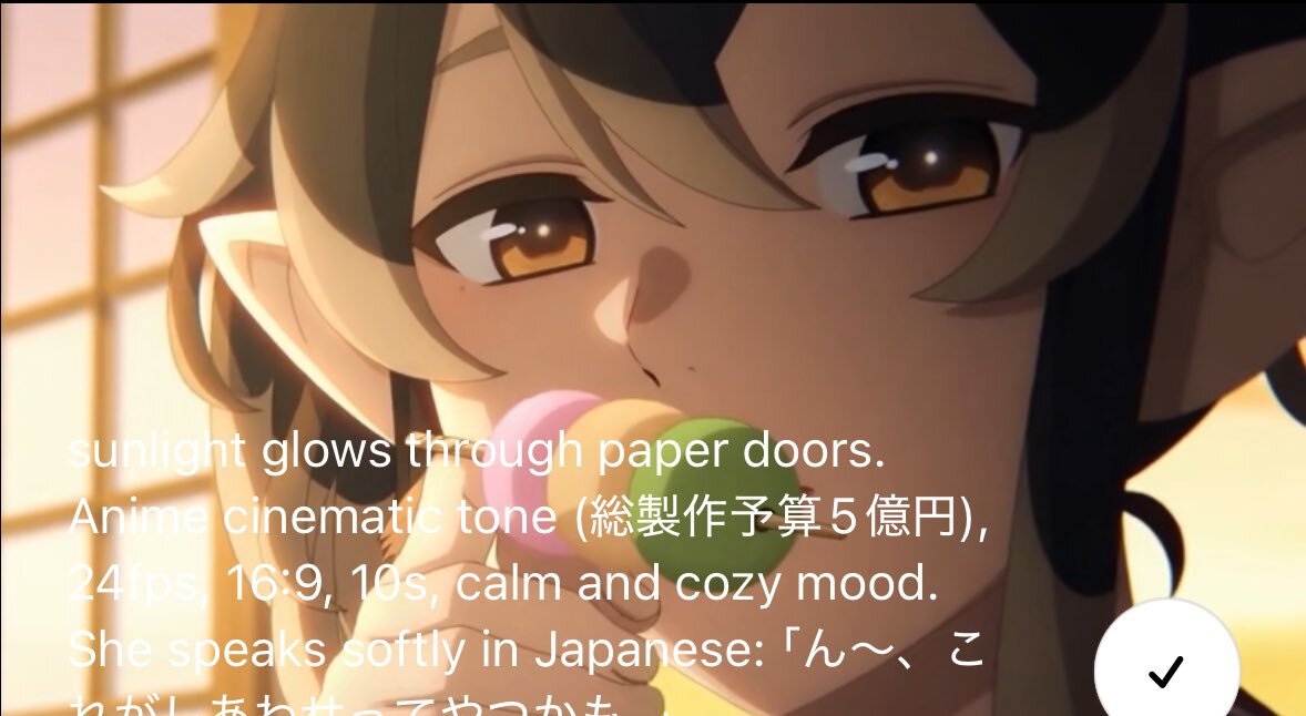 「これが幸せってやつかも…」 (総制作費5億円ver.) 全体的にカメラアングルとか部屋とか少し豪華になった気がする、これが五億の力か… (ちょっと団子の持ち方が変だけど) #sora2 #東京百鬼パレード pic.x.com/GWtJbypASf