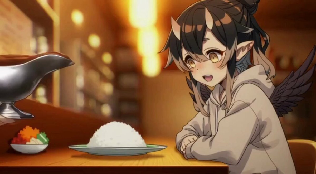 🍛ひとコマパレード #018「うーん、幸せ♡」 おつとめ中のランチは新宿らしいところで食べないとね。「うーん、幸せ」とほおばる元祖中村屋の日本カレー。 #Sora2 #RatBreaker #ひとこまパレード #東京百鬼パレード x.com/anko_dsa/statu…