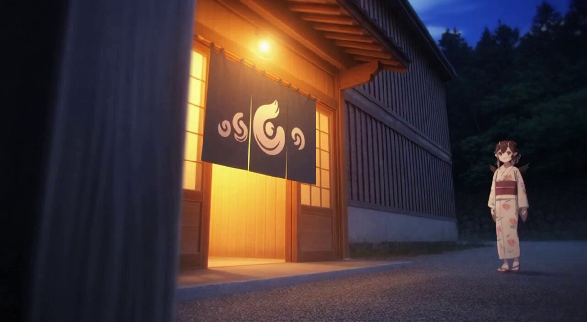 🎬 ひとコマパレード #008.1 「極楽♪極楽♫」 オフカットです。館内で鼻歌を歌うアカリ。 #ひとコマパレード #Sora2 #東京百鬼パレード pic.x.com/rlcHxon07i