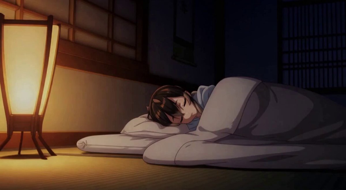 🎬ひとコマパレード #006「眠り」 真夜中の和室。ぐっすり眠るアカリ。 #ひとコマパレード #Sora2 #東京百鬼パレード x.com/anko_dsa/statu…