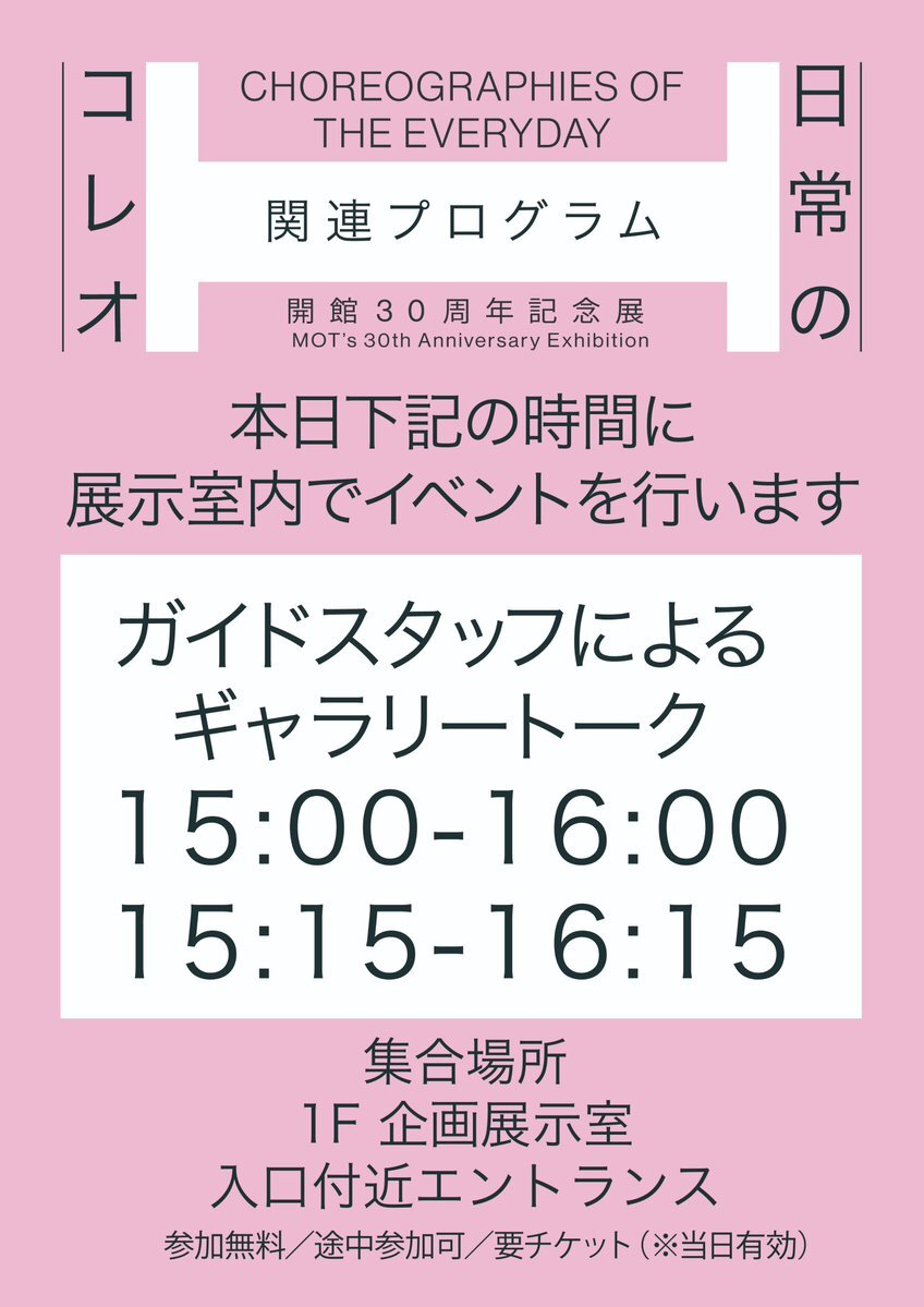 \本日10/4(土)15:00~開催!/ 【開館30周年記念展 日常のコレオ】関連プログラム ガイドスタッフによるギャラリートーク 展示室を会場に、約1時間かけて #東京都現代美術館 ガイドスタッフが選んだ作品をご紹介します💁 *事前予約不要 詳細はこちら⇒mot-art-museum.jp/events/2025/09… pic.x.com/YoRfSe5UWK