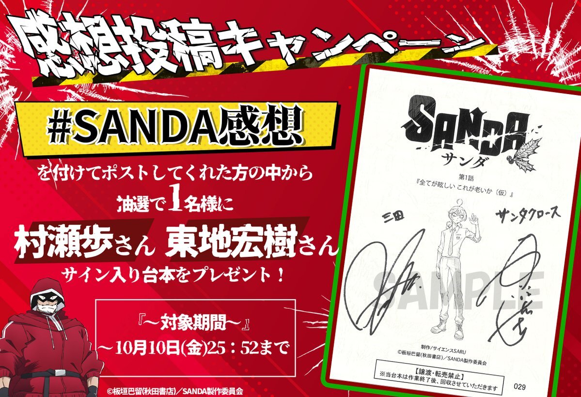 ❅°.。゜.❆。・。❅。 #SANDA 感想投稿キャンペーン 。❅°.。゜.❆。・。❅。 「 #SANDA感想 」を付けて ポストしてくれた方の中から抽選で1️⃣名様に #村瀬歩 さん #東地宏樹 さん サイン入り第1話台本をプレゼント!🎁 🌎PrimeVideoでは世界独占配信中 amazon.co.jp/gp/video/detai…