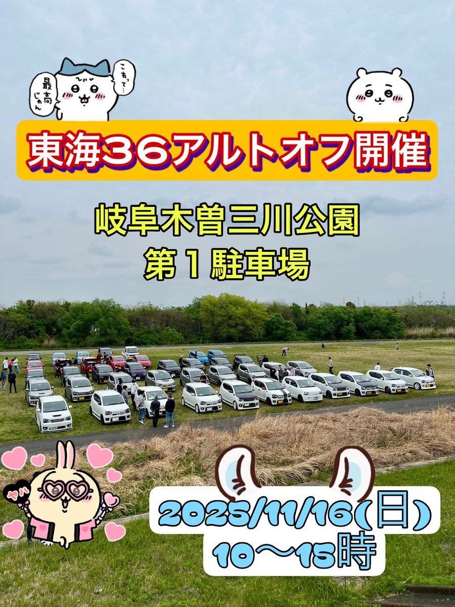 東海36アルトオフまであと1カ月になりました! 他車種の参加予定の車両たち✨🚗✨ 36以外でも見学・参加出来ます👍 数台で来る場合は必ず参加表明お願いします🙏 ルールマナーは守ってください⚠️ 参加費無料 途中参加途中退場自由 雨天決行☀️ #東海36アルトオフ