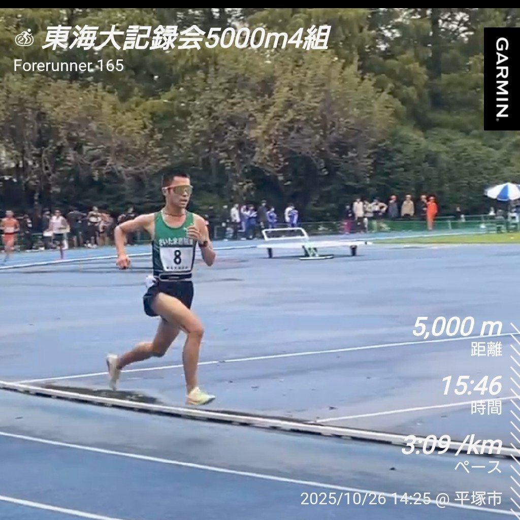 25.10.26 #東海大記録会 5000m 4組 10着 15'46"62 (3'06-08-12-13-07) 3戦連続で15分40秒半ばの記録。 高い安定感を誇ってますね🫠 ぼり @yata_bori1208 とのランニングデートは楽しかった🫠 @challenge_702 さんとは約2年ぶりの直接対決ながら影を踏むことすらできず🫠 引き続き練習頑張りますー pic.x.com/ap0KPeEhsL