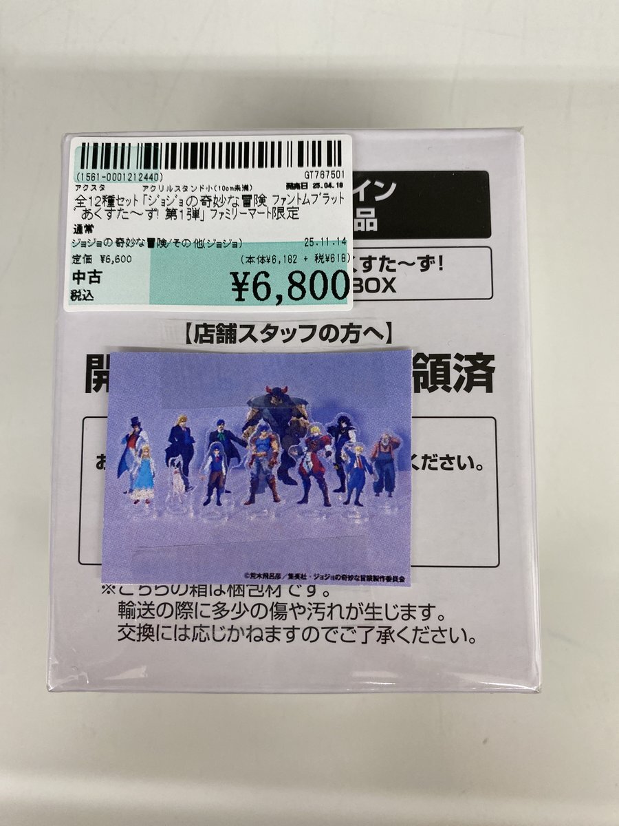 "✨#駿河屋東海荒尾店#駿河屋 #買取 させていただいた商品のご案内です ⏰ 全12種セット 「ジョジョの奇妙な冒険 ファントムブラッド あくすた~ず! 第1弾」 ファミリーマート限定 #雑貨 お求めは、#東海荒尾店 へお越しください✨" pic.x.com/Nfmj3uR8Sd