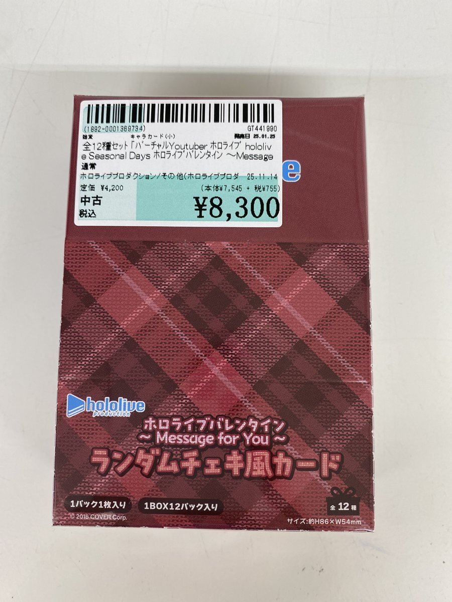 "✨#駿河屋東海荒尾店#駿河屋 #買取 させていただいた商品のご案内です ⏰ 全12種セット 「バーチャルYoutuber ホロライブ hololive Seasonal Days ホロライブバレンタイン ~Message for You~ ONLY SHOP & FAIR ランダムチェキ風カード」 #雑貨 お求めは、#東海荒尾店 へお越しください✨" pic.x.com/GU0bKNBqa3