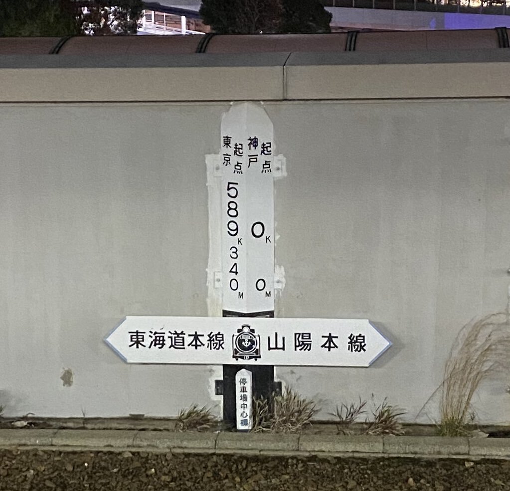 東海道本線と山陽本線の境界線。 随分前に建てられたようだ。 #兵庫 #神戸 #JR西日本 #停車場中心標 #東海道本線 #山陽本線 pic.x.com/X6CStOnryt