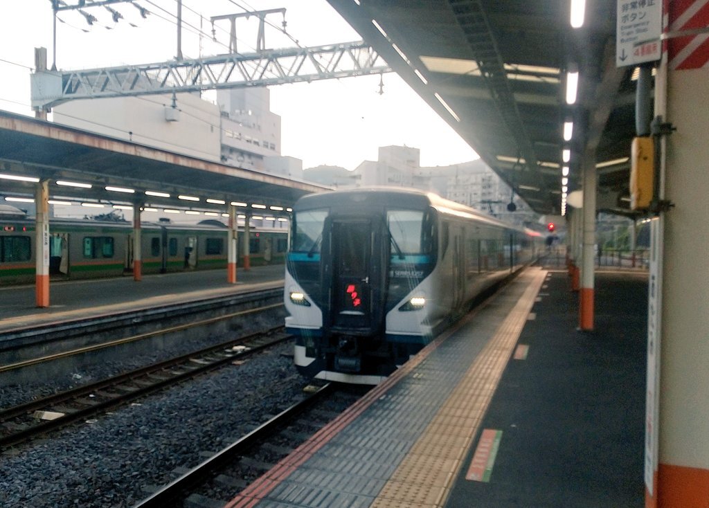 🌃横浜 16:56着🔄17:43発 特急常磐鎌倉号 日立行 横浜で特急の乗換え。 遠回りの帰宅になってしまいますが、1回経験してみたかった東京、上野の通過を体験するために乗ります。 横浜を出ると、次は常磐線の柏。 #東海道本線 #横浜 #旅行 pic.x.com/zrI4GX5yWr