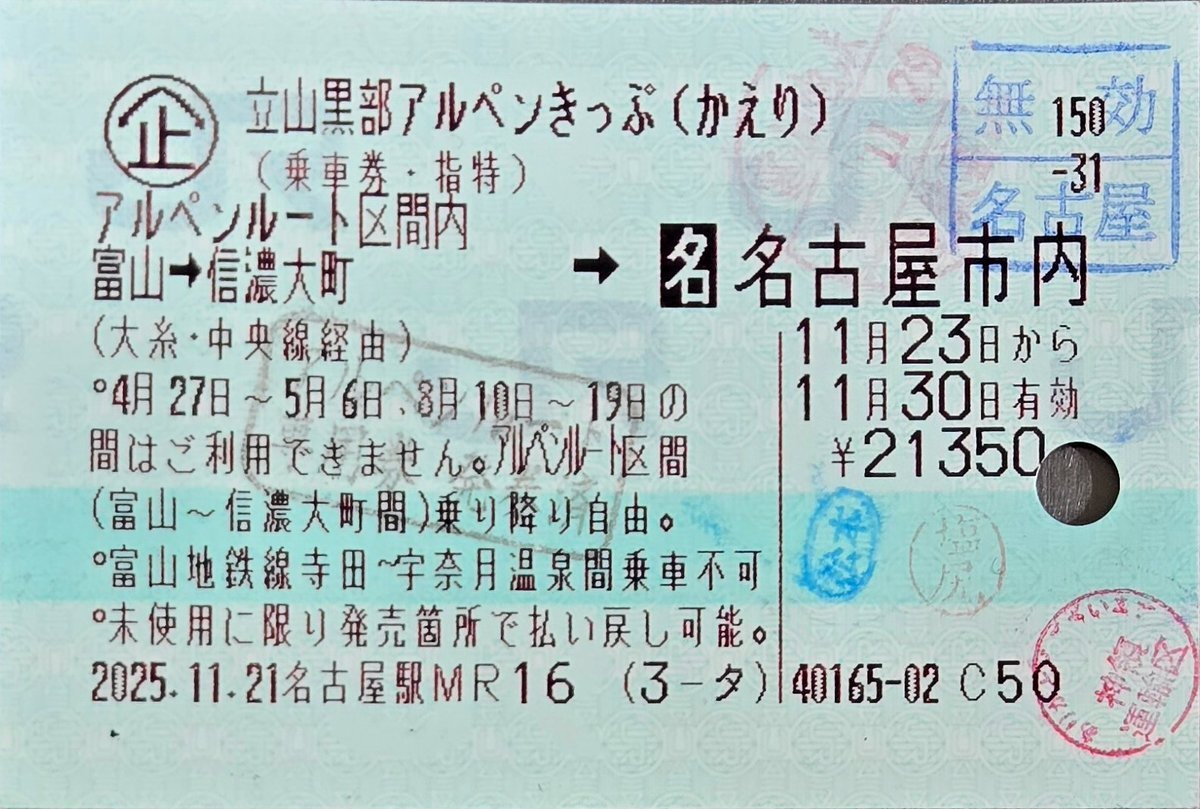 20:43 塩尻発 中央本線,東海道本線直通 特別急行 しなの26号 名古屋行き 1026M列車 海シンA5編成 東芝C-SC35A ↓ 22:42 名古屋着 #東海旅客鉄道 #JR東海 #中央本線 #東海道本線 #中央西線  #383系0番台 #車内改札印 #神領運輸区 #名古屋駅 #無効印 pic.x.com/rTeJiOsuRw