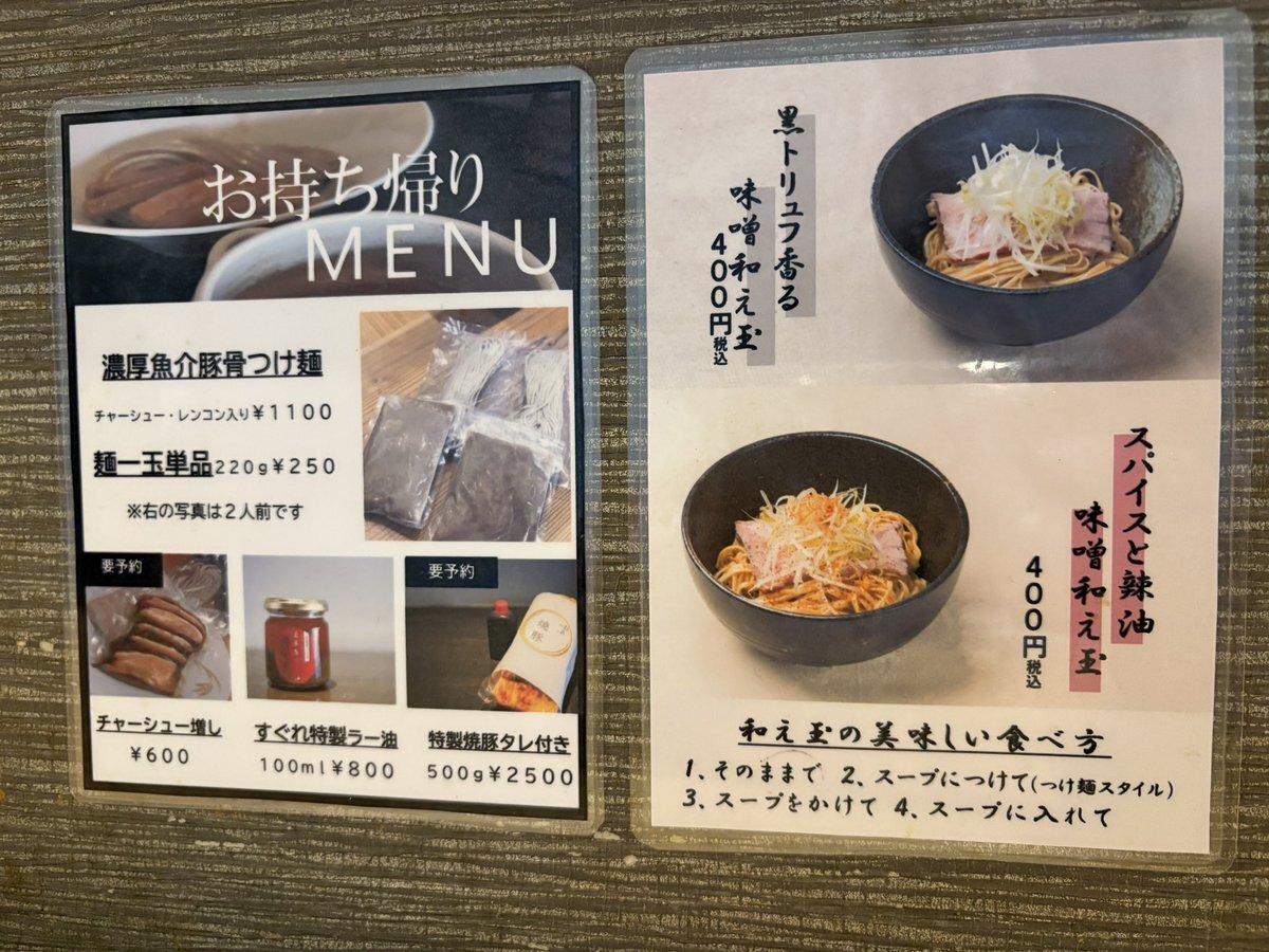 麦の道すぐれ 濃厚つけ麺,味玉,黒トリュフ香る味噌和え玉,スパイスと辣油味噌の和え玉 #東海道本線 #尾張一宮 #名鉄名古屋本線 #名鉄一宮 #一宮市 #麦の道すぐれ #ラーメン #つけ麺 #和え玉 pic.x.com/OfuCYtLbSK