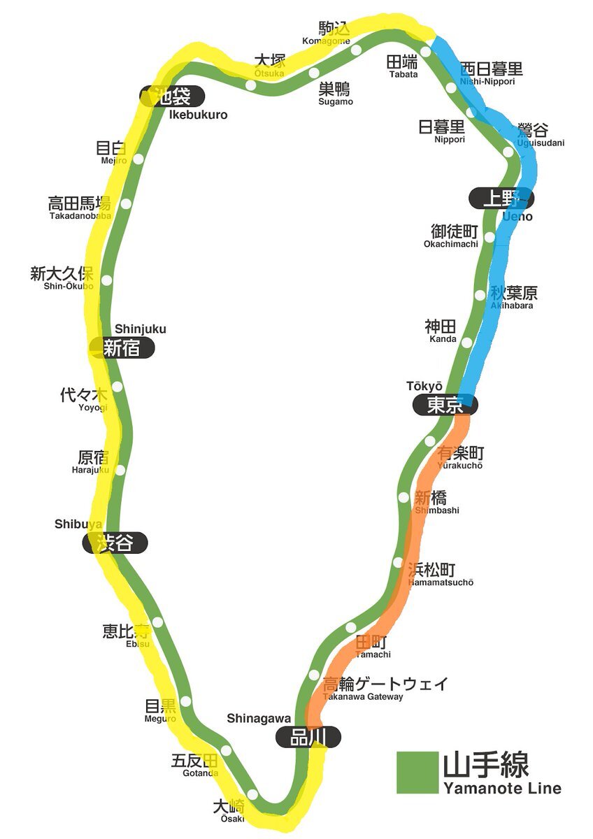 ※この人が何を言っているのかわからない方向け ヨドバシカメラのCMソングに象徴される「丸い緑の #山手線 」は環状運転する電車に与えられた系統名称です 路線名称としての山手線は下の図の黄色の区間だけ、水色(田端~東京)は #東北本線 、オレンジ(東京~品川)は #東海道本線 です x.com/shoinoue/statu…