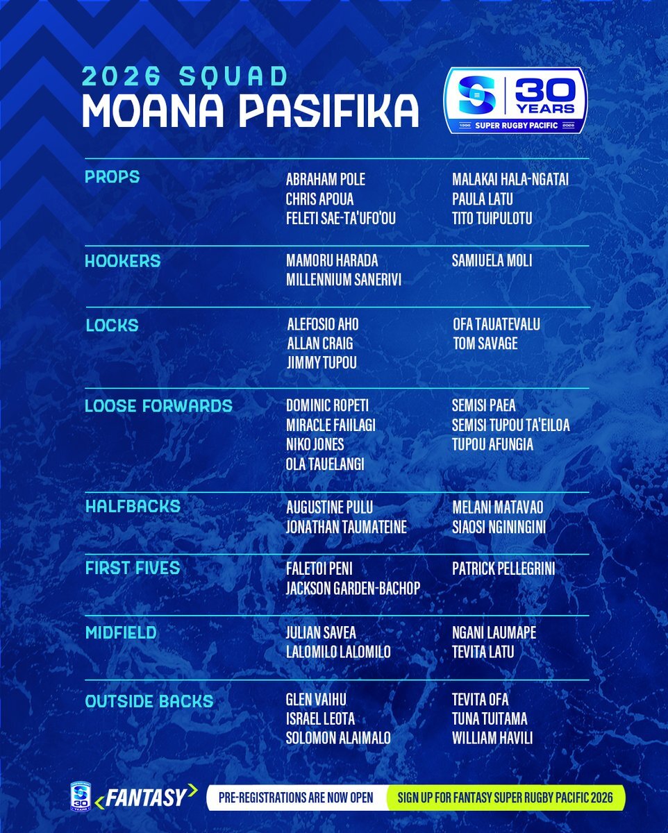 Moana Pasifika squad for 2026 🌊 Full story here: moanapasifika.co.nz/moana-pasifika… Become a member: moanapasifika.co.nz/memberships/
