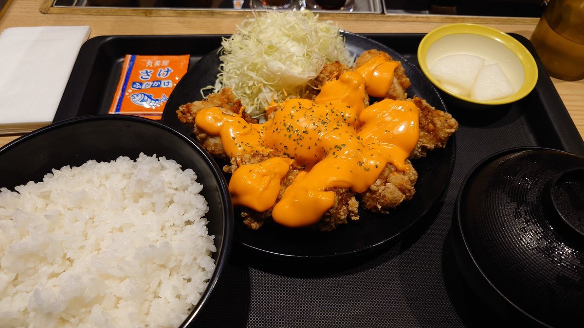 コチュマヨ唐揚げ定食 このままガッツリいけます👍 今月ハードワークなので(笑) #松の家 #千葉駅 #孤独のグルメ pic.x.com/G6hkvHEfvx