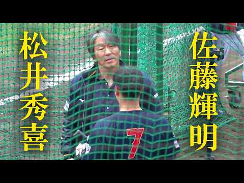 #巨人 宮崎キャンプ最終クール初日 全体練習を終え、個別練習へ移る準備の間に #門脇誠 内野手が、この日から臨時コーチを務めている #松井秀喜 さんに打撃に関して質問しています。身振り手振り交えて丁寧に答えていました。 #前進