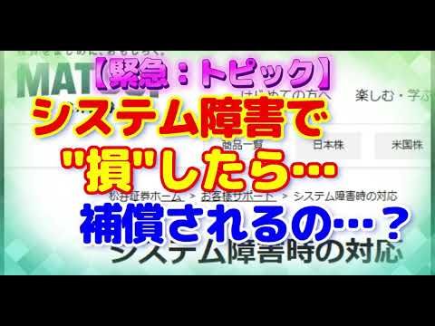 緊急:トピック【システム障害で、損したら、補償されるの?】デイトレーダーの悲劇・・・「機会損失」で葬られます youtu.be/t3AdG_6IuC4?si… via @YouTube #デイトレ #トレードシステム障害 #松井証券