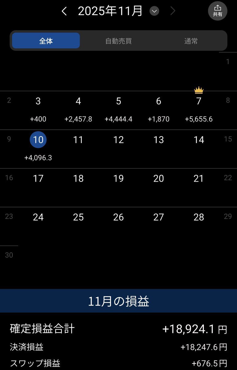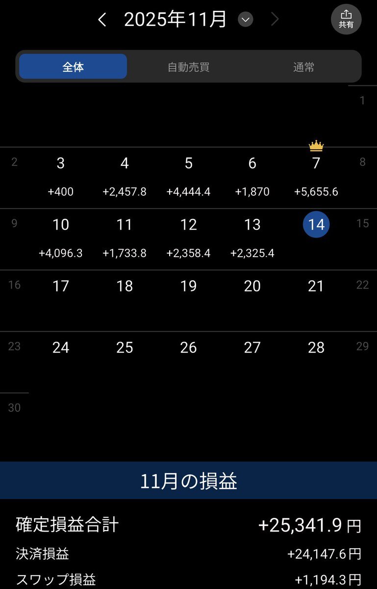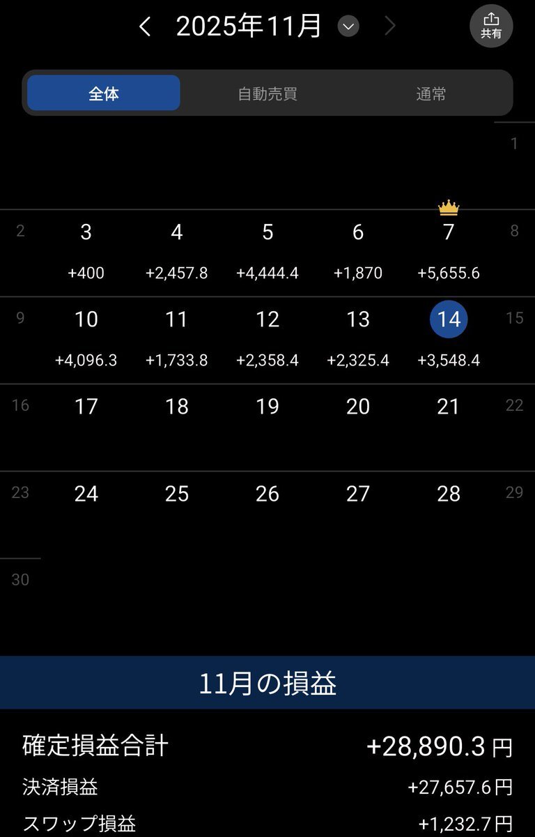 このX上でハイレバ勇者の奮戦を見ていると胸が熱くなる❗️✊😍 でも 自分はFXトレードで冷静に利益を積み上げて行こう…🤔 昨日はそれなりに価格レートが⤴️⤵️してくれたので確定利益は3,548円、今週の実質損益は+17,840円(含み損益含む)でした。😊 #松井証券 #FX自動売買 #こつこつ投資 pic.x.com/4roLW0rojw