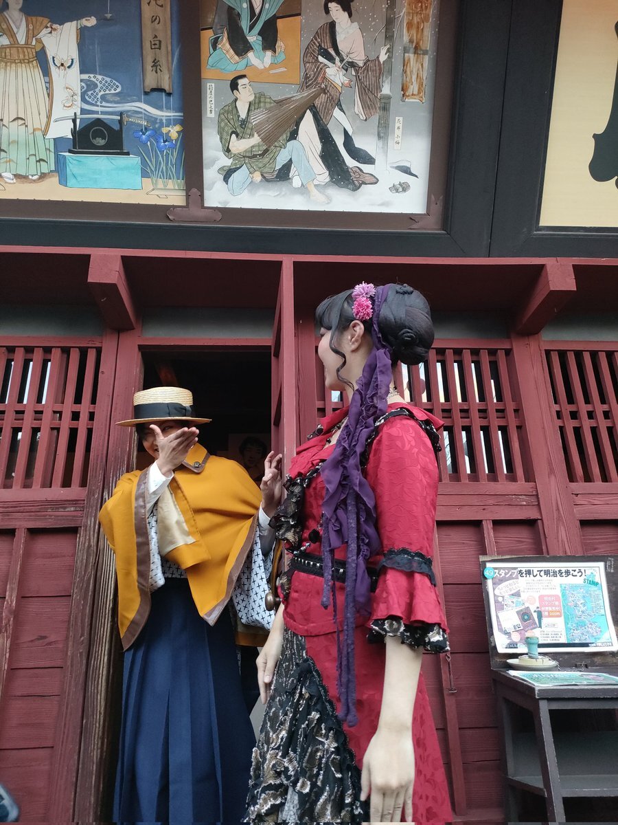 須磨子さんお誕生日おめでとうございます🎉 公演の様子はカメラで撮ったので とりあえずお見送りの様子と啄木さん☺️ #明治偉人隊 #松井須磨子生誕祭 pic.x.com/W5rVkeOP5I