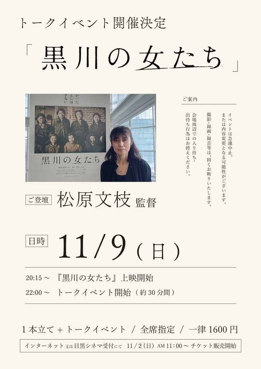 【🗣️トークイベント決定🗣️】 ┈┈┈┈┈┈┈┈┈┈┈┈┈┈ 秋のドキュメンタリー映画特集 ┈┈┈┈┈┈┈┈┈┈┈┈┈┈ 🗓️11/9㊐ ☆ 20:15〜『#黒川の女たち』 ☆ 22:00〜 #松原文枝 監督 トークイベント 🎦1本立て・指定席・一律1600円 🎟️ご予約は11/2㊐AM11:00〜 pic.x.com/nRSeB3chbK