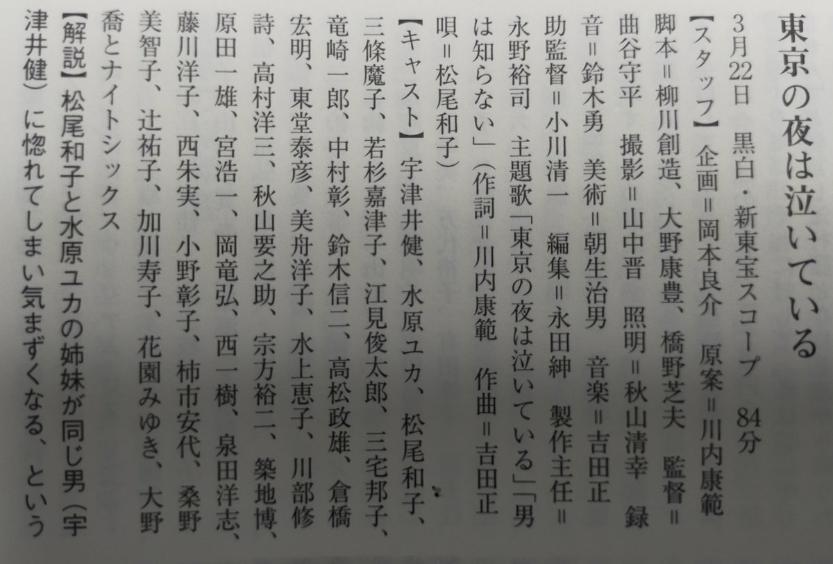 【帰ってきた!新東宝のディープな世界によせて】東京の夜は泣いている 新東宝末期に製作された歌謡映画。この作品でデビューした水原ユカさんは、のちに水原ユカリに改名し松竹に移った。 #新東宝 #シネマヴェーラ #松尾和子 #宇津井健 pic.x.com/xD0i91Npmj