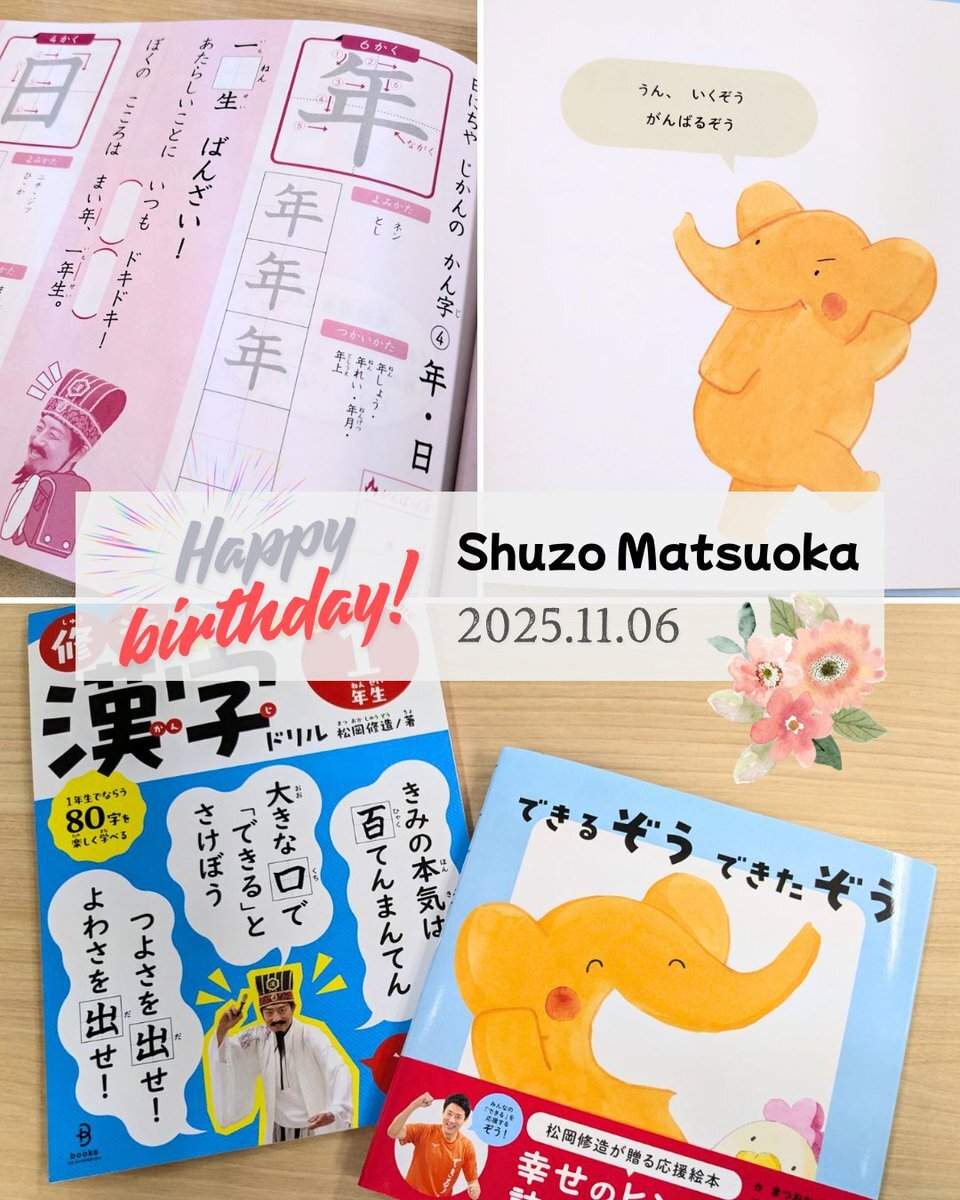 🗓️11月6日は #松岡修造 さんのお誕生日です❗️ 文化工房は今年、2冊の本の出版でご一緒させていただきました📚✨ 歳を重ねてパワーアップ‼️益々ポジティブ⁉️な修造さんを見られるのが楽しみです✨ 🎂お誕生日、おめでとうございます🎉 #修造漢字ドリル #できるぞうできたぞう pic.x.com/Yk49wgTLI7