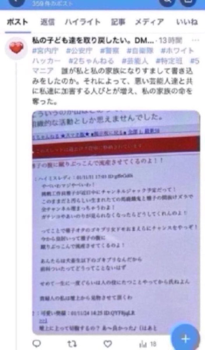 私と私の家族は絶対に皇室に対して誹謗中傷はしていない。ある芸能人とその仲間達、ファン達、反社達が組織的に、私達になりすまして書き込みをした。私は娘とケータイを交換していた。だから娘が冤罪に。 #パークシティ牟礼南 #麗タ # #光ケーブル #モデム #フォレスト #森君 #中川 #松本 pic.x.com/LTQOngwqqE